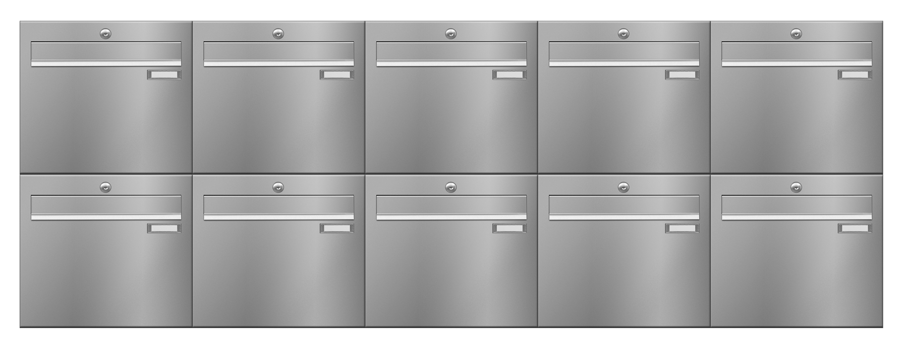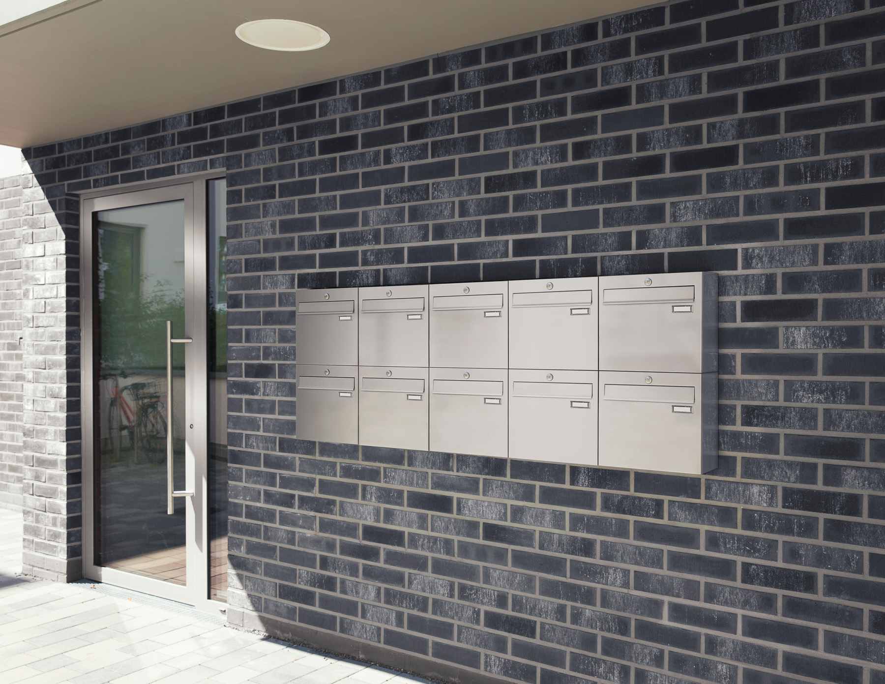 Bei Bedarf können weitere Kästen nachbestellt werden um die Briefkastenanlage zu ergänzen, wie beispielhaft auf dem Bild auf der Hauswand zu sehen. Die Kästen werden einzeln geliefert und können vor Ort dann beliebig neben- oder übereinander montiert werden.