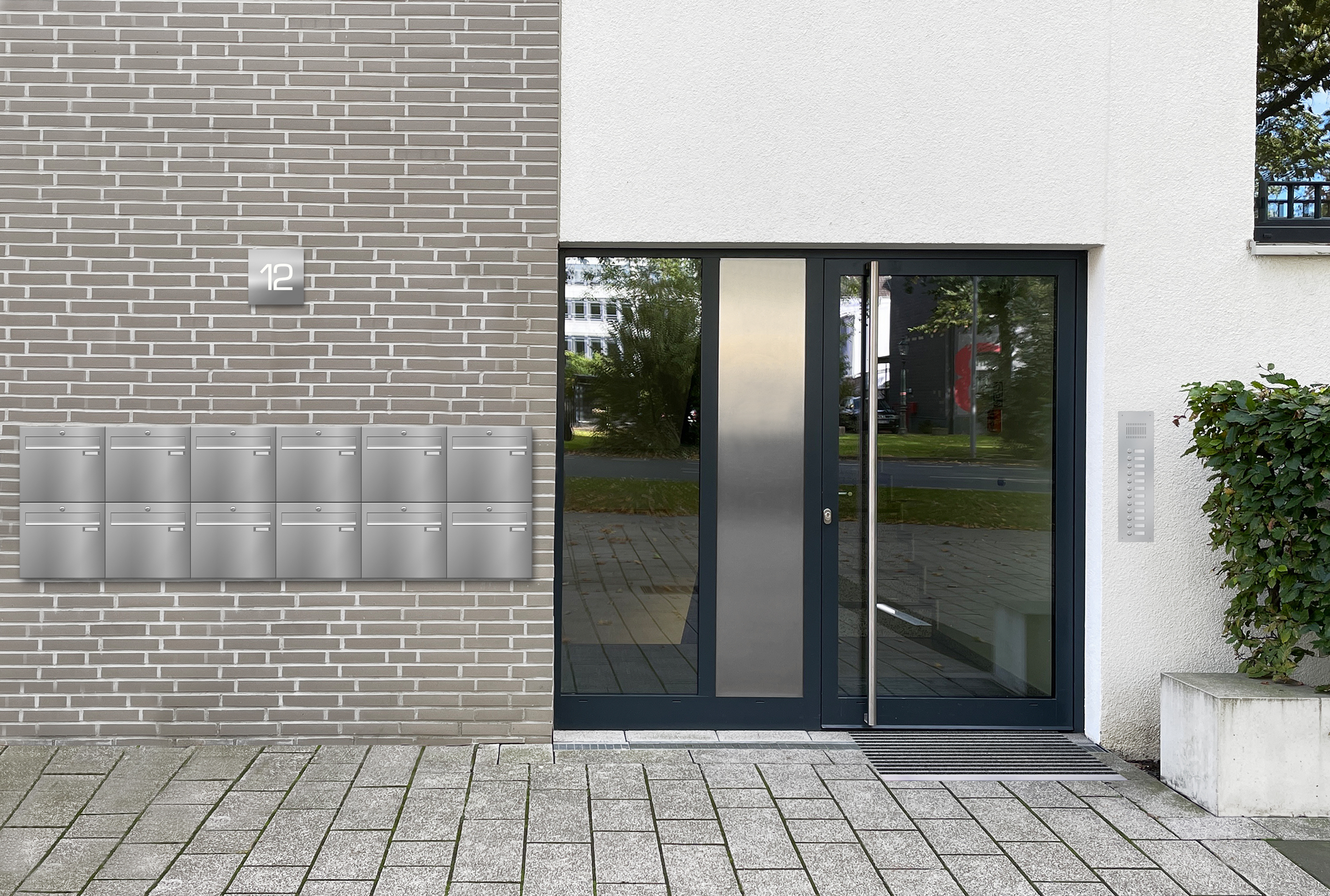 Bei Bedarf können weitere Kästen nachbestellt werden um die Briefkastenanlage zu ergänzen, wie beispielhaft auf dem Bild auf der Hauswand zu sehen. Die Kästen werden einzeln geliefert und können vor Ort dann beliebig neben- oder übereinander montiert werden.