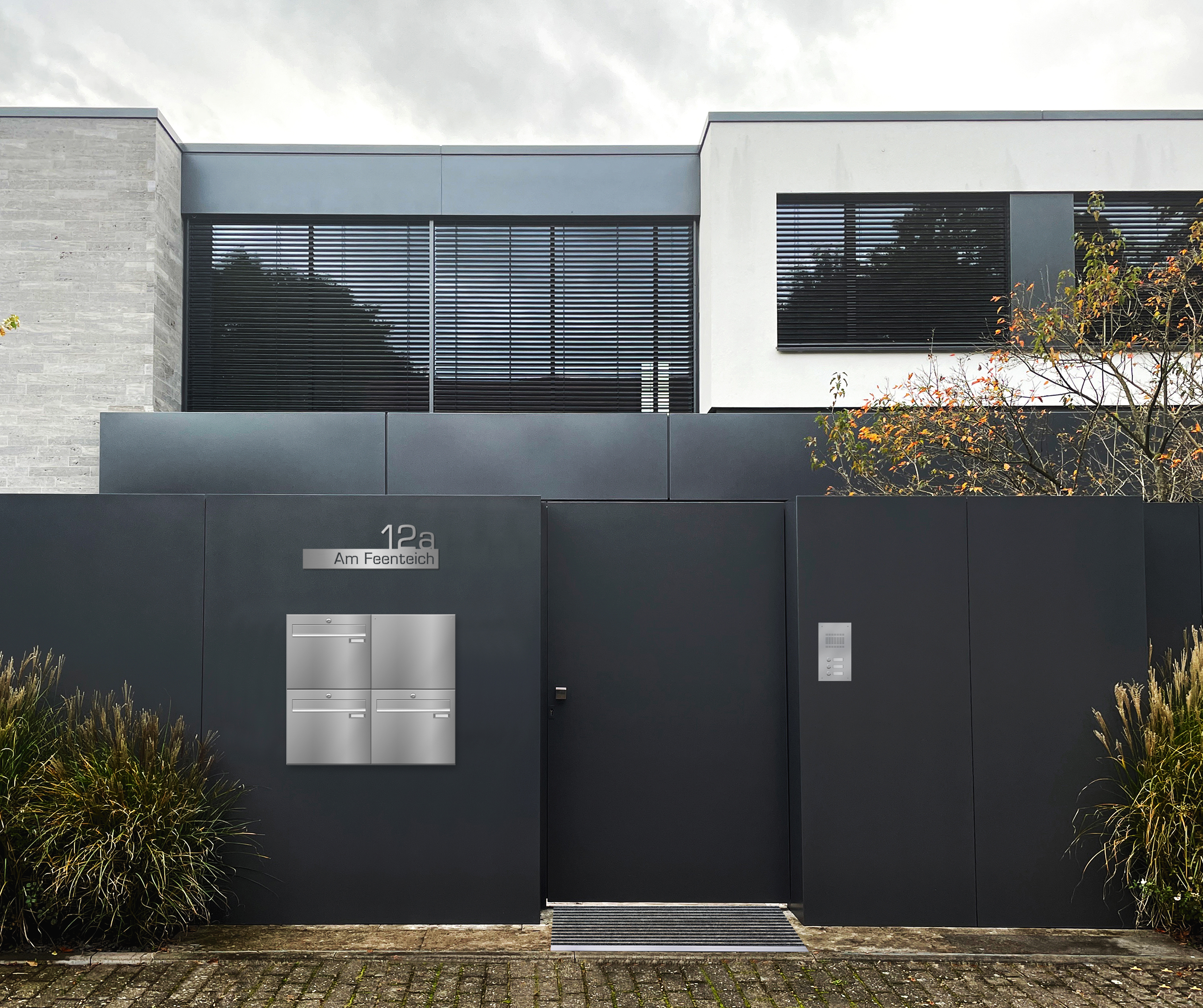 Bei Bedarf können weitere Kästen nachbestellt werden um die Briefkastenanlage zu ergänzen, wie beispielhaft auf dem Bild auf der Hauswand zu sehen. Die Kästen werden einzeln geliefert und können vor Ort dann beliebig neben- oder übereinander montiert werden.