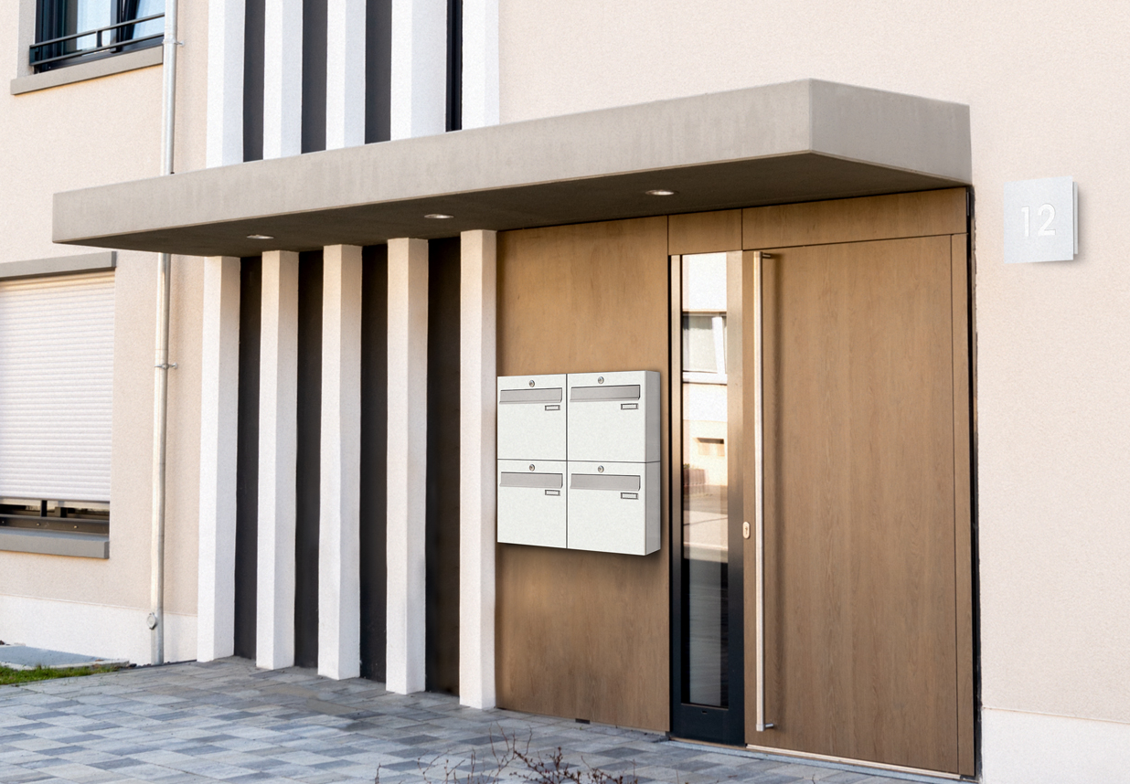 Bei Bedarf können weitere Kästen nachbestellt werden um die Briefkastenanlage zu ergänzen, wie beispielhaft auf dem Bild auf der Hauswand zu sehen. Die Kästen werden einzeln geliefert und können vor Ort dann beliebig neben- oder übereinander montiert werden.