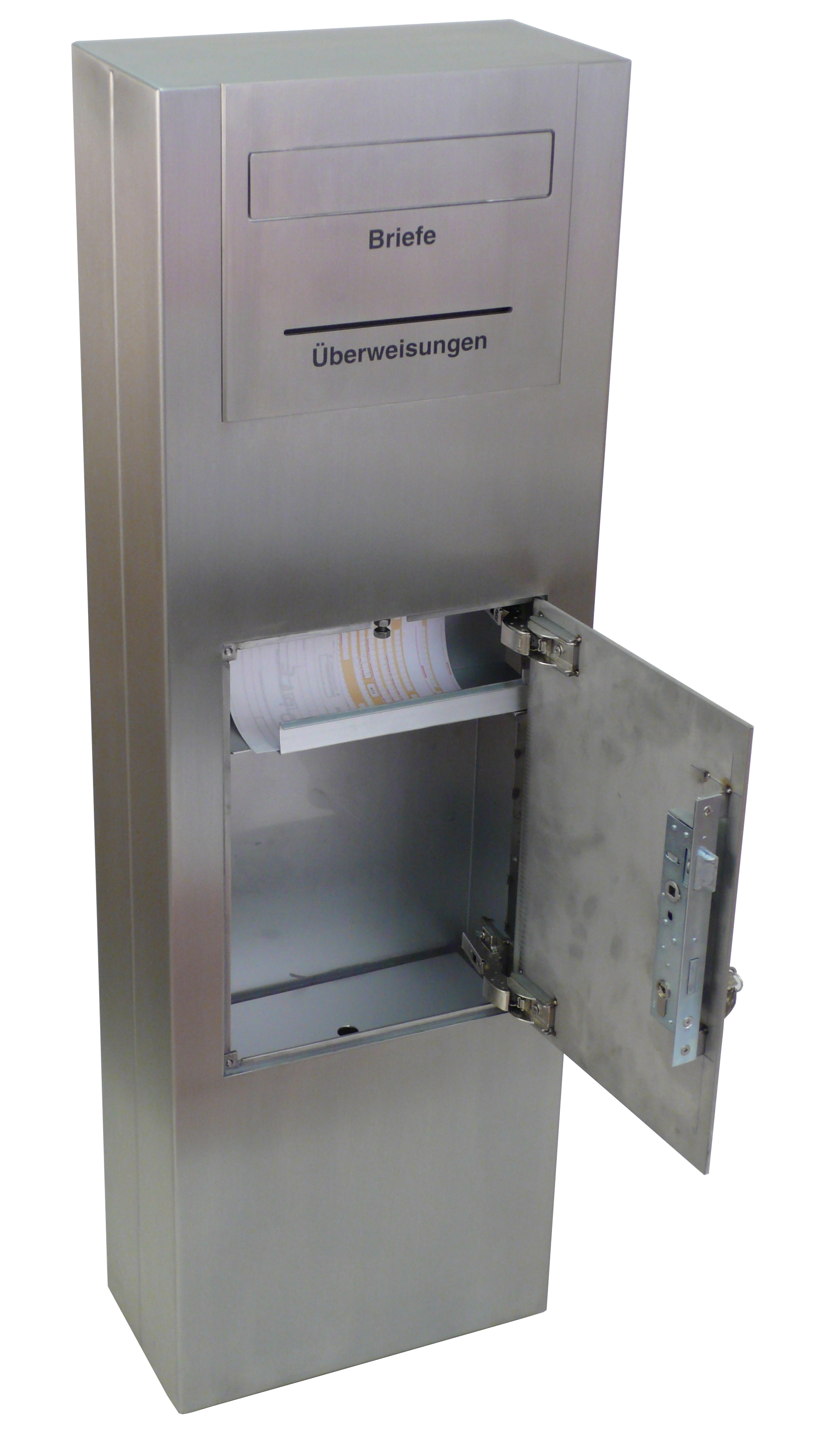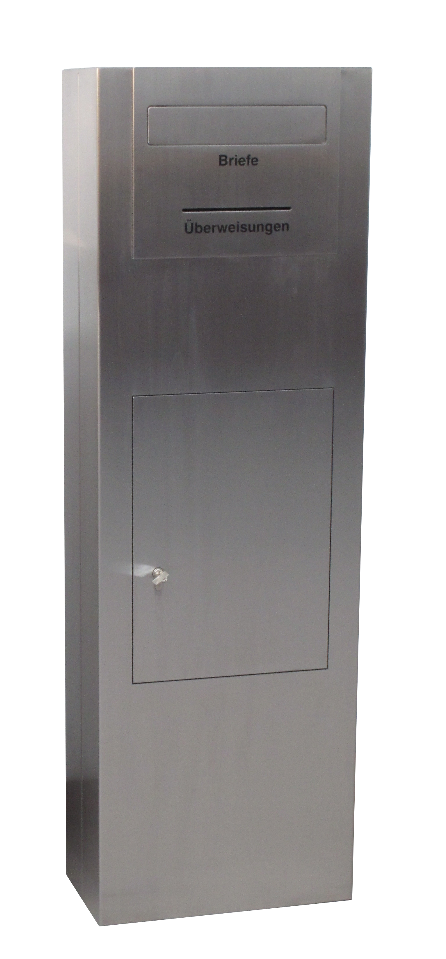 Briefkastensäule zur Bodenmontage mit Trennung von Post und/oder Überweisungen.