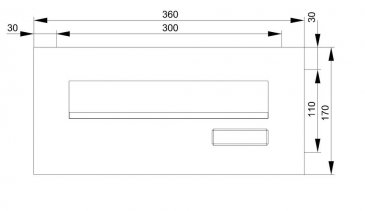 Jeder Briefkasten ist im Kastenmaß von 300 x 110 x 380 mm (BxHxT) ausgeführt, Einwurfklappen 265 x 35 mm (BxHxT).