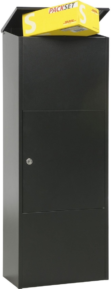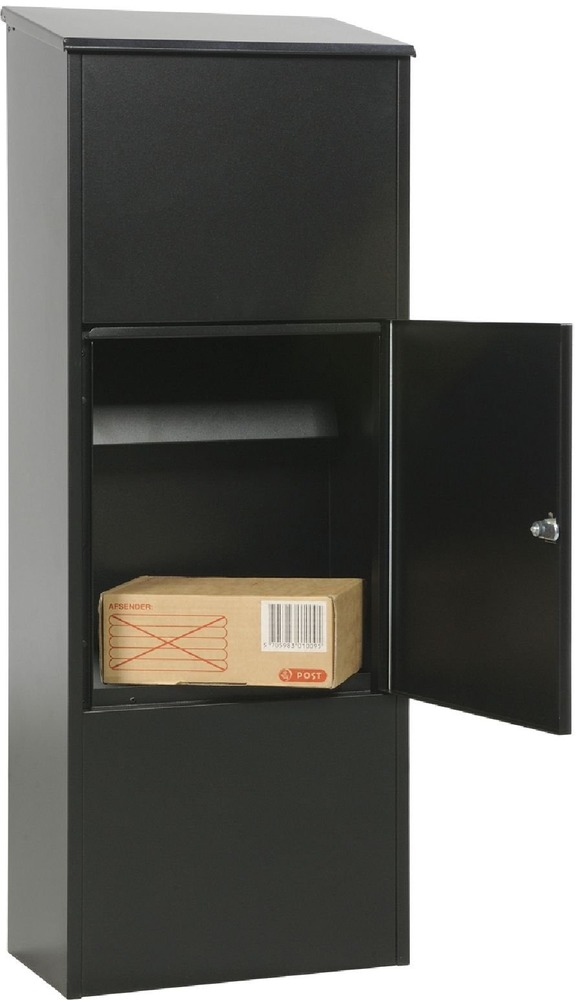 Der im Kasten befindliche Zwischenboden kann entfernt und so das Volumen bei Bedarf vergrößert werden. So kann der Kasten vollständig für Post genutzt werden. Die Post- und Päckchenentnahme erfolgt über die abschließbare Drehtür. Zur Montage wird der Briefkasten einfach auf ein vorhandenes Fundament aufgeschraubt, um ihn vor Diebstahl zu schützen.