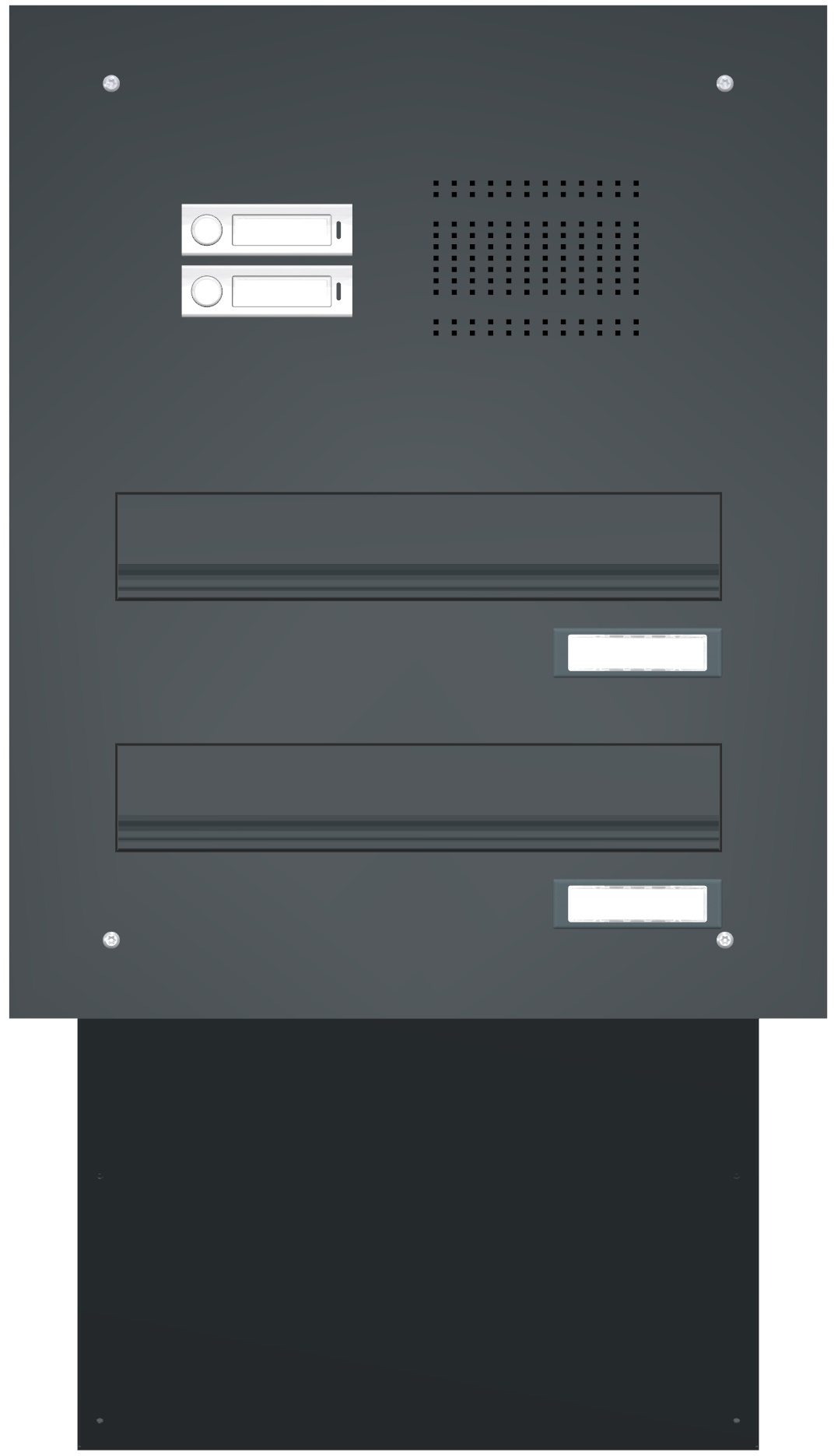 Mauerdurchwurf Briefkastenanlage mit 2 Briefkästen sowie 2 Klingeln.