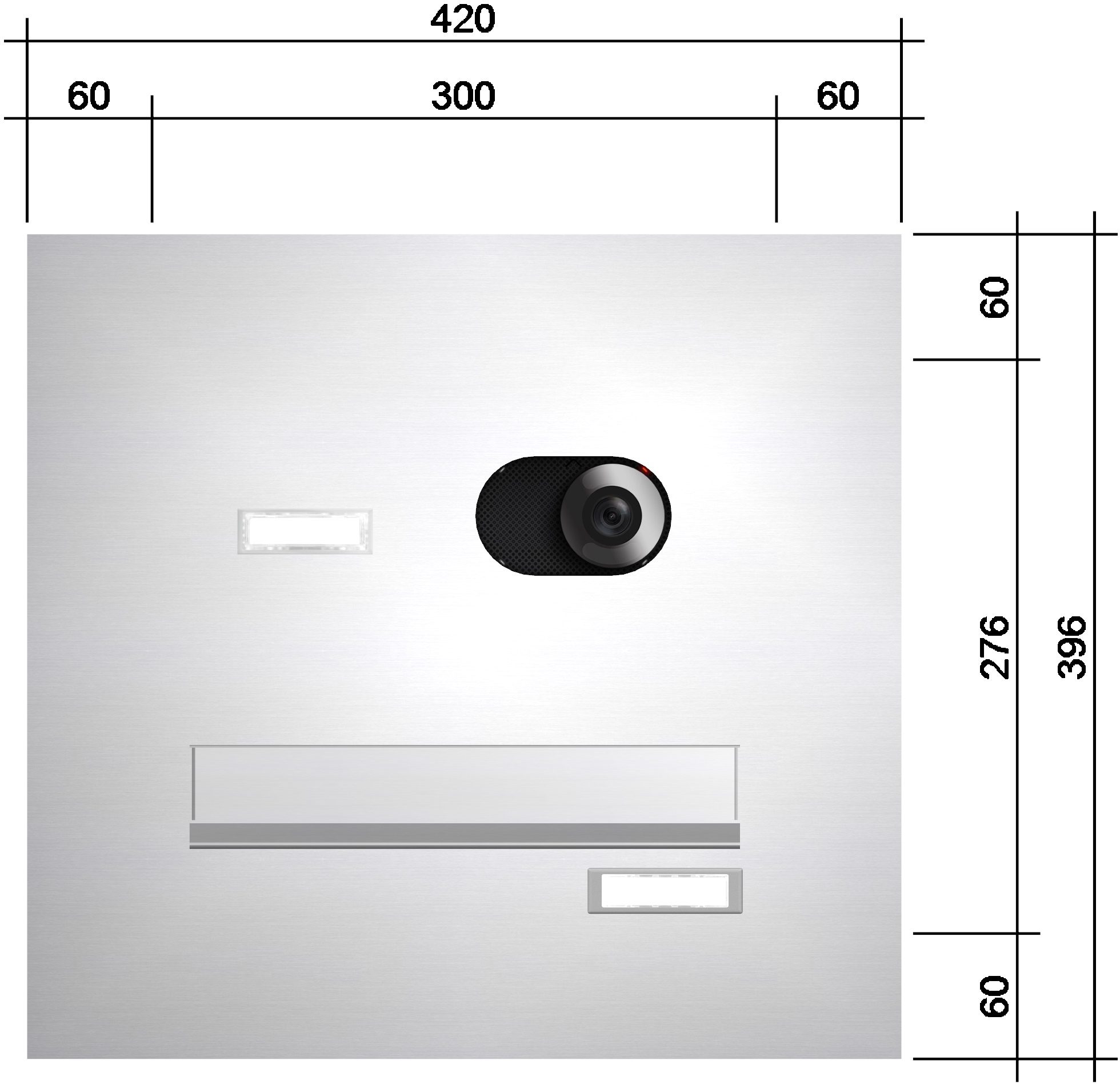 Jeder Briefkasten ist im Kastenmaß von 300 x 110 x 380 mm (BxHxT) ausgeführt, Einwurfklappen 265 x 35 mm (BxHxT).
