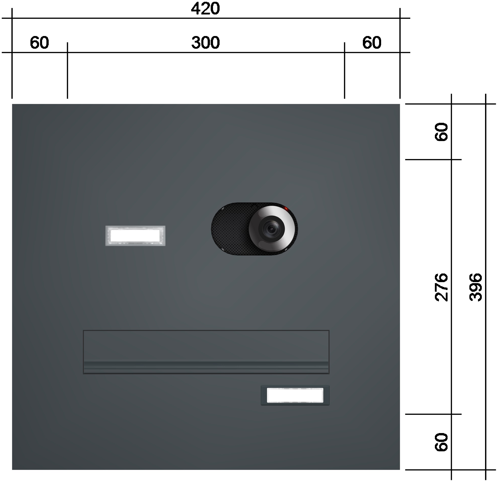 Jeder Briefkasten ist im Kastenmaß von 300 x 110 x 380 mm (BxHxT) ausgeführt, Einwurfklappen 265 x 35 mm (BxHxT).