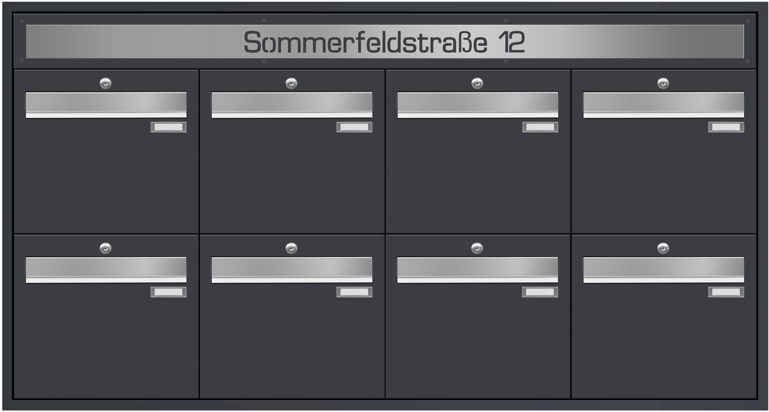 Die Anlage wird in sich komplett montiert geliefert (in einem Block), inklusive 2 Schlüsseln für jeden Briefkasten sowie Namensschild.