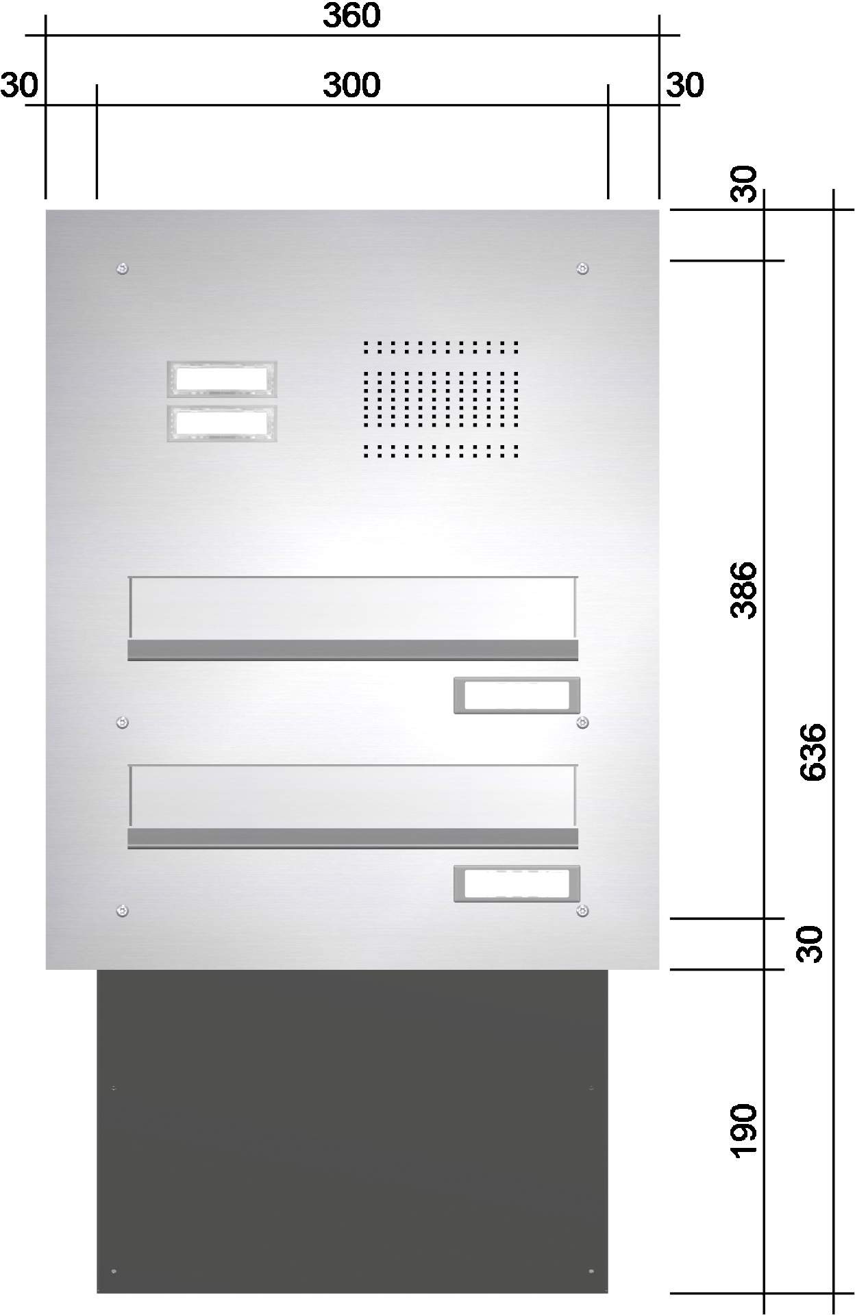 Die Anlage wird in sich komplett montiert geliefert (in einem Block), inkl. 2 Schlüsseln für jeden Briefkasten sowie Namensschild.