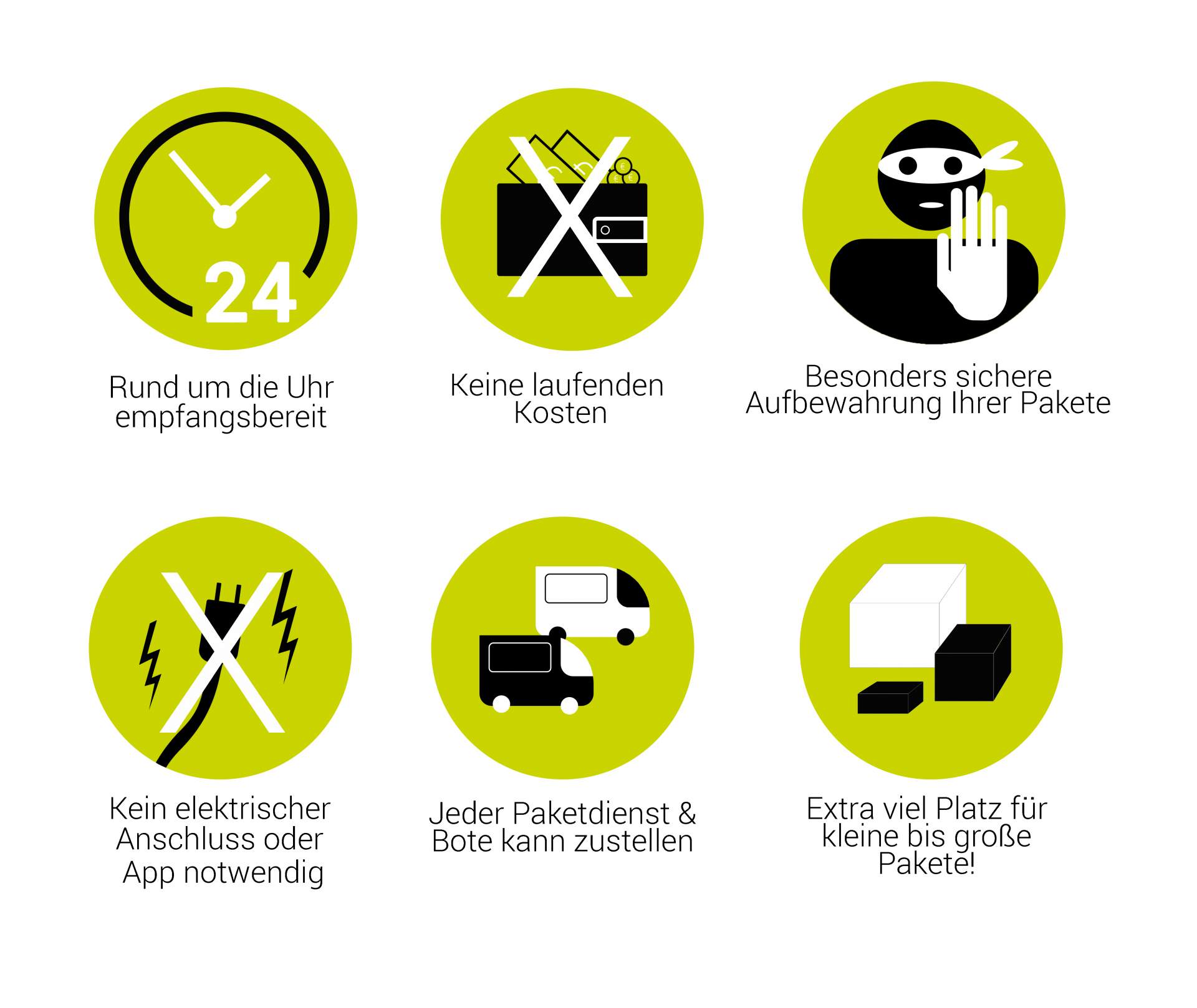 Das Paketfach ist zustellerunabhängig und mit einem speziellen Schloß, dem CLEVERLOCK, ausgestattet. CLEVERLOCK ist ein mechanisches Paketschloss: die Tür des Paketkastens ist geschlossen, aber das Paketfach für den Zusteller dennoch zugänglich und belieferbar. Nachdem das Paket hineingelegt wurde, verriegelt der Zusteller die Tür mit einem einfachen Klick. Das Paketfach kann nun erst wieder durch den Eigentümer mit Hilfe seines Schlüssels geöffnet werden. Smart & sicher zugleich! Und im separaten Briefkasten findet Ihre Post ausreichend Platz!