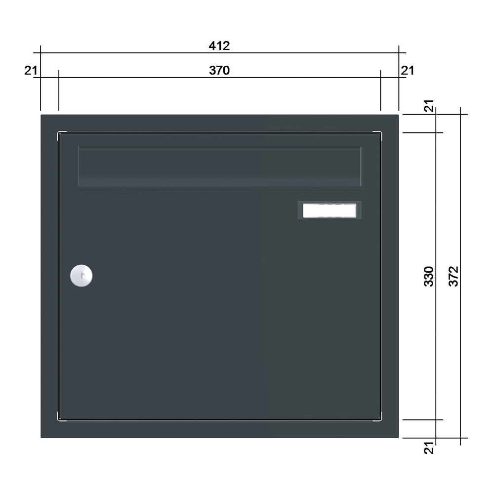 - Posthaltebügel serienmäßig integriert: Verhindert das Herausfallen der Post beim Öffnen