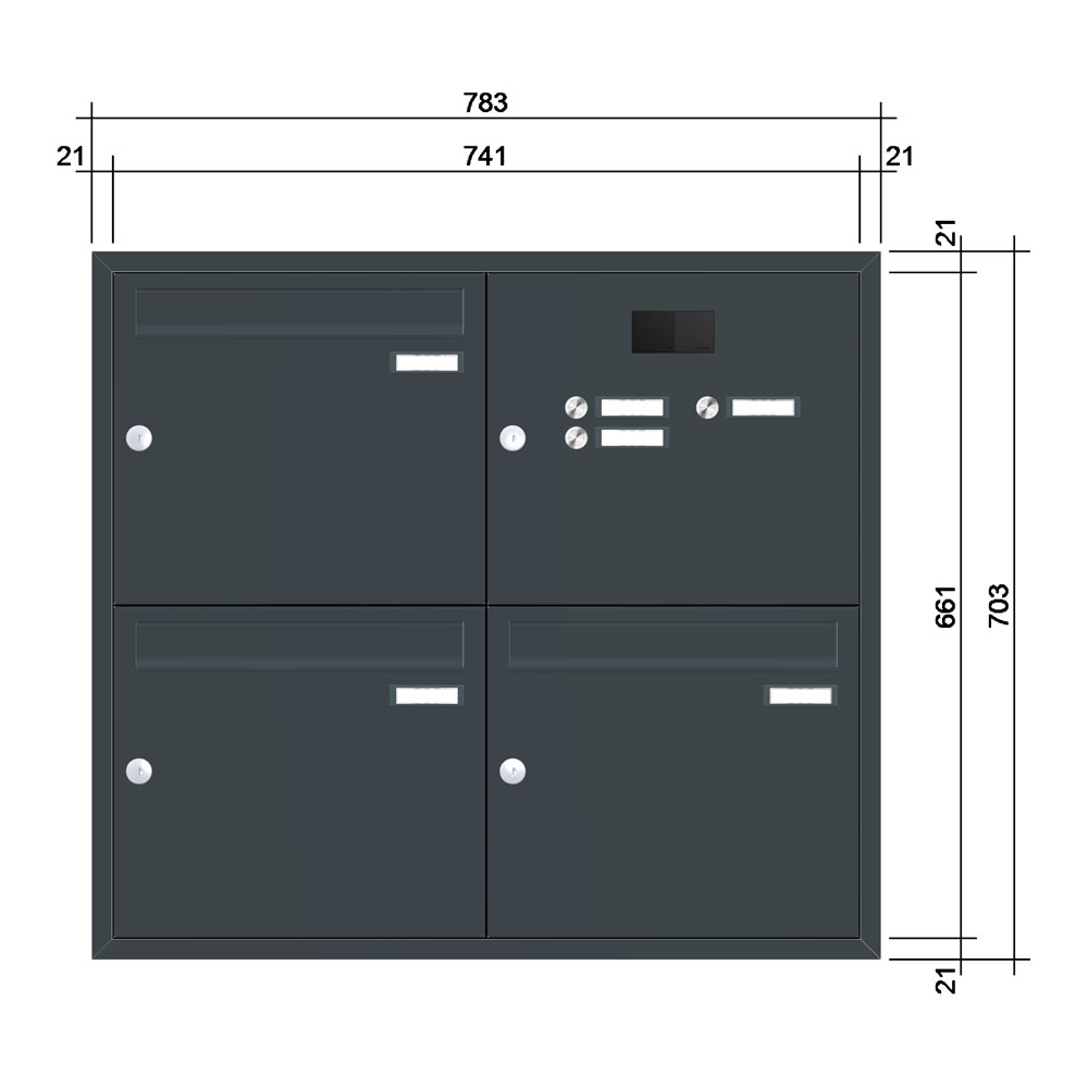 - Posthaltebügel serienmäßig integriert: Verhindert das Herausfallen der Post beim Öffnen