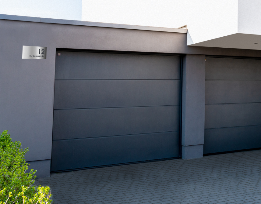 Das Hausnummernschild VIRTON harmoniert besonders gut mit den Frabox-Briefkästen.