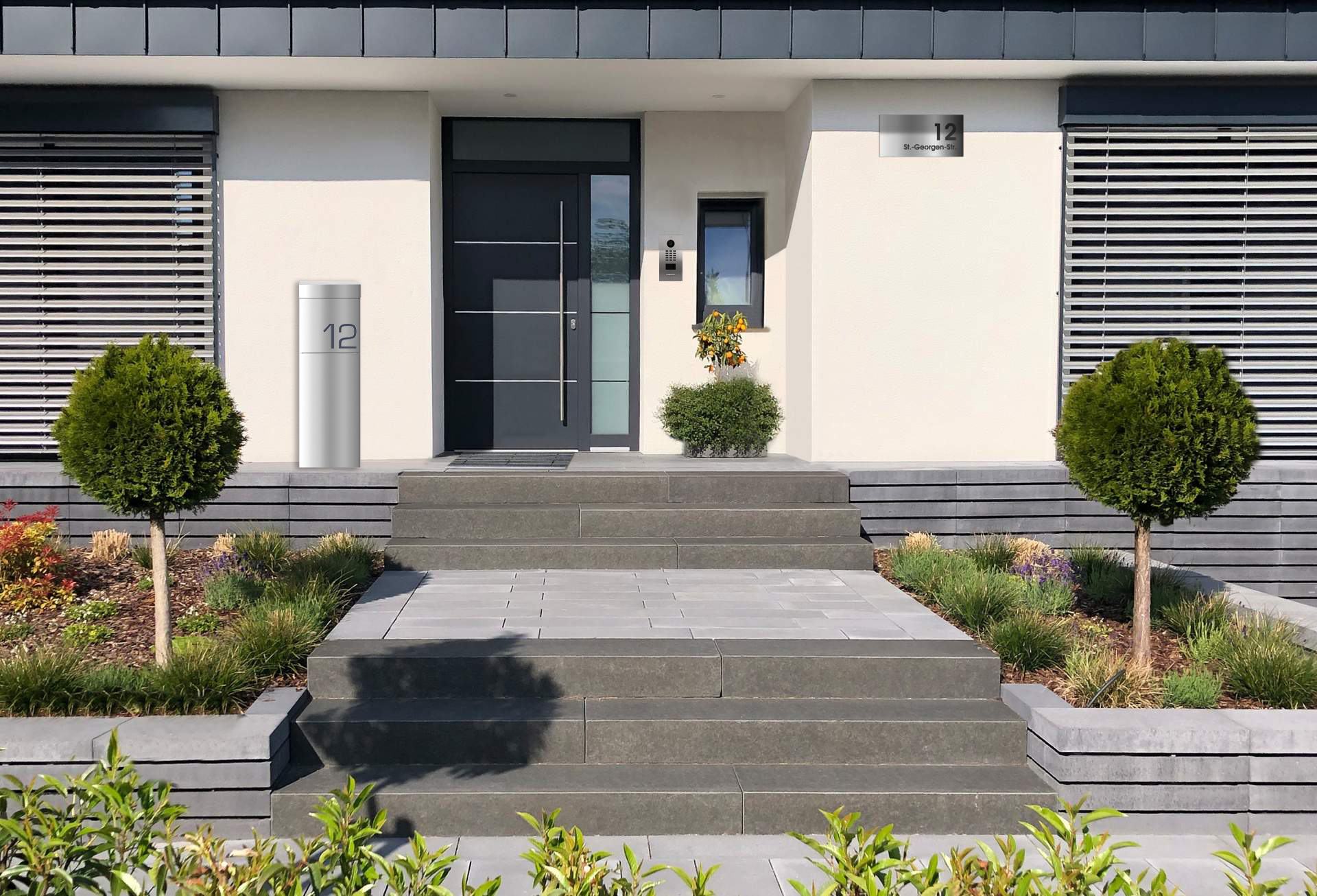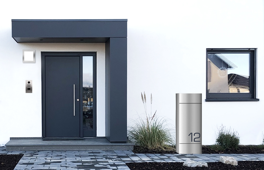 Diese Haus-Nr. ist aus hochwertigem Edelstahl in der Schriftart Eurostile gefertigt und in RAL 7016 anthrazitgrau pulverlackiert worden. Die Haus-Nr. ist selbstklebend und zur dauerhaften Beklebung auf glatten Oberflächen vorgesehen.