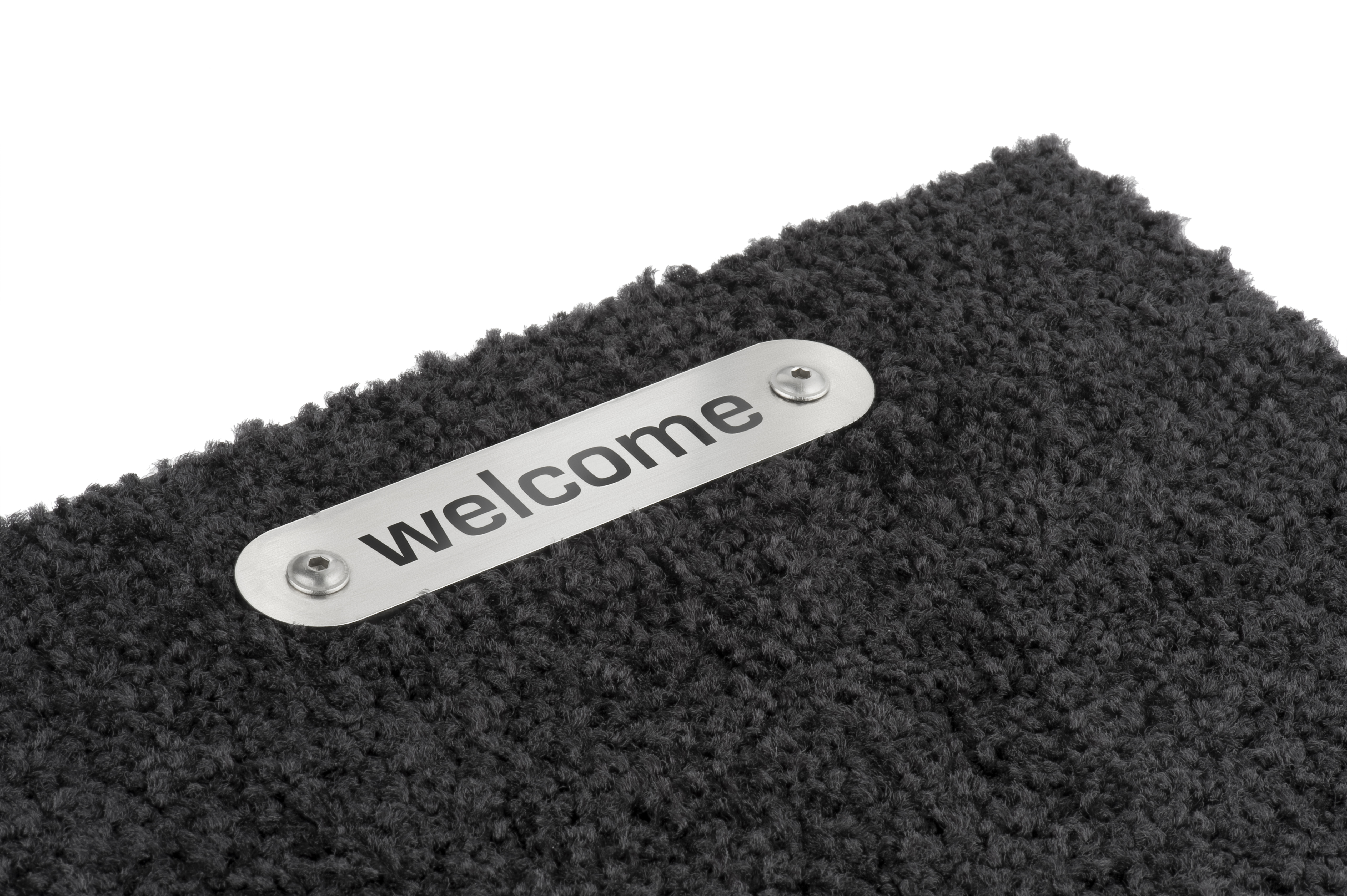 Picobello hat ein Element aus Edelstahl mit der Laserbeschriftung welcome, in einer dezenten und hochwertigen Anmutung.