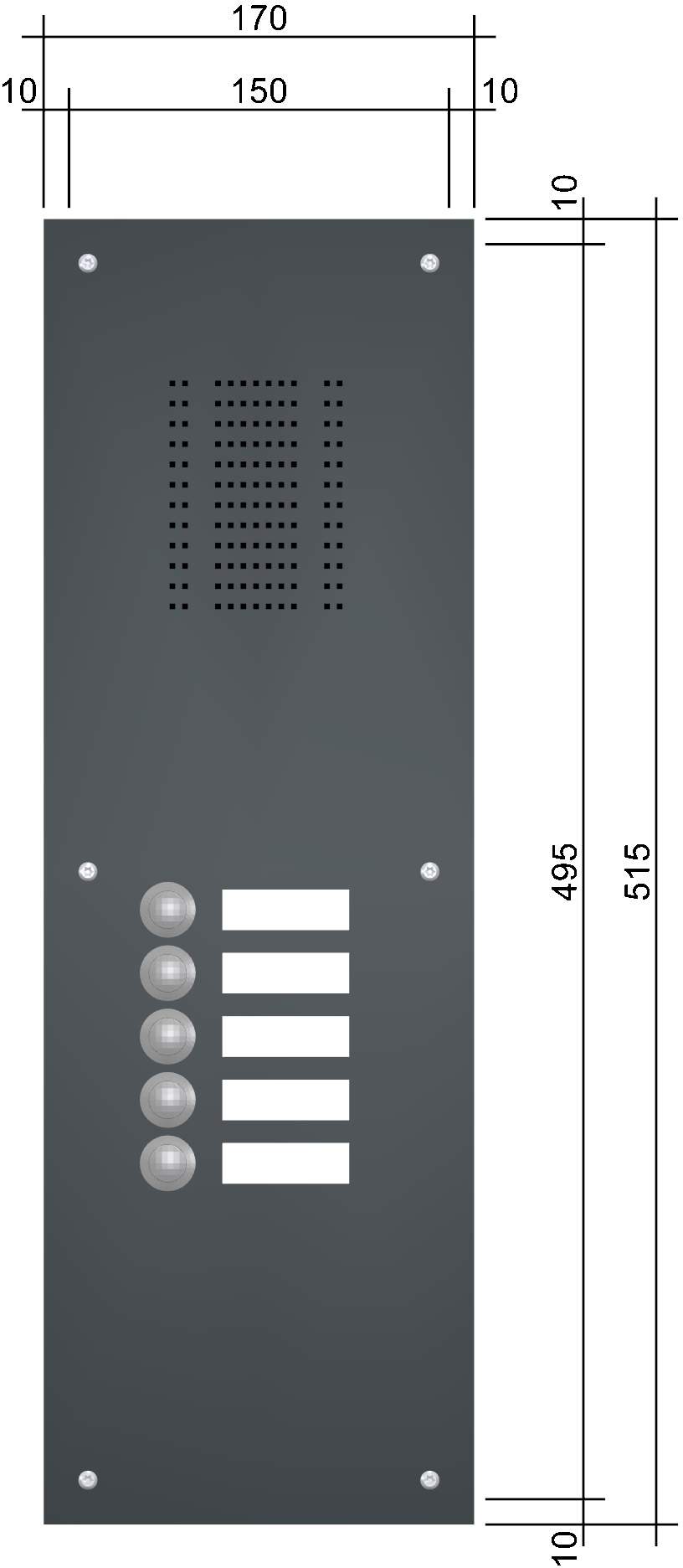 mit 5 Klingeltastern: 170 x 515 mm, Unterputzdose 152 x 498 x 65 mm, B x H x T
