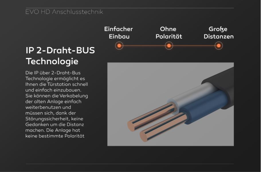 Einfache Installation durch 2-Draht IP-BUS Technologie: Dank dieser innovativen Technologie wird die Verkabelung erheblich vereinfacht, was Zeit und Kosten spart.