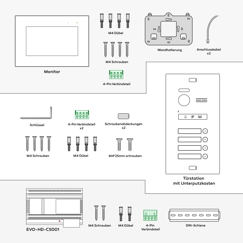 Komplettlösung für Einfamilienhäuser: Mit dem EVO HD-Kit erhalten Sie ein All-in-One-System, das sowohl die Sicherheit als auch den Komfort Ihres Zuhauses steigert.