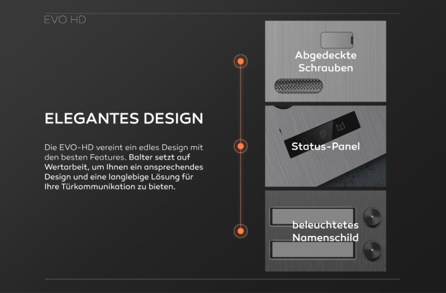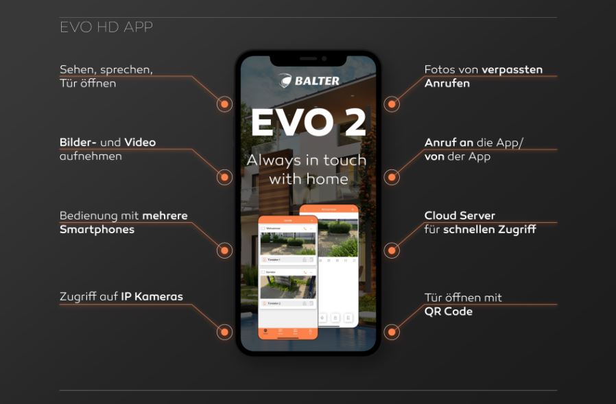 WLAN-Verbindung und EVO2 App: Die Integration von WLAN ermöglicht es, das System mit der EVO2 App zu steuern. Dies erlaubt die Fernüberwachung des Eingangs und die Türöffnung direkt über das Smartphone, egal wo man sich befindet.