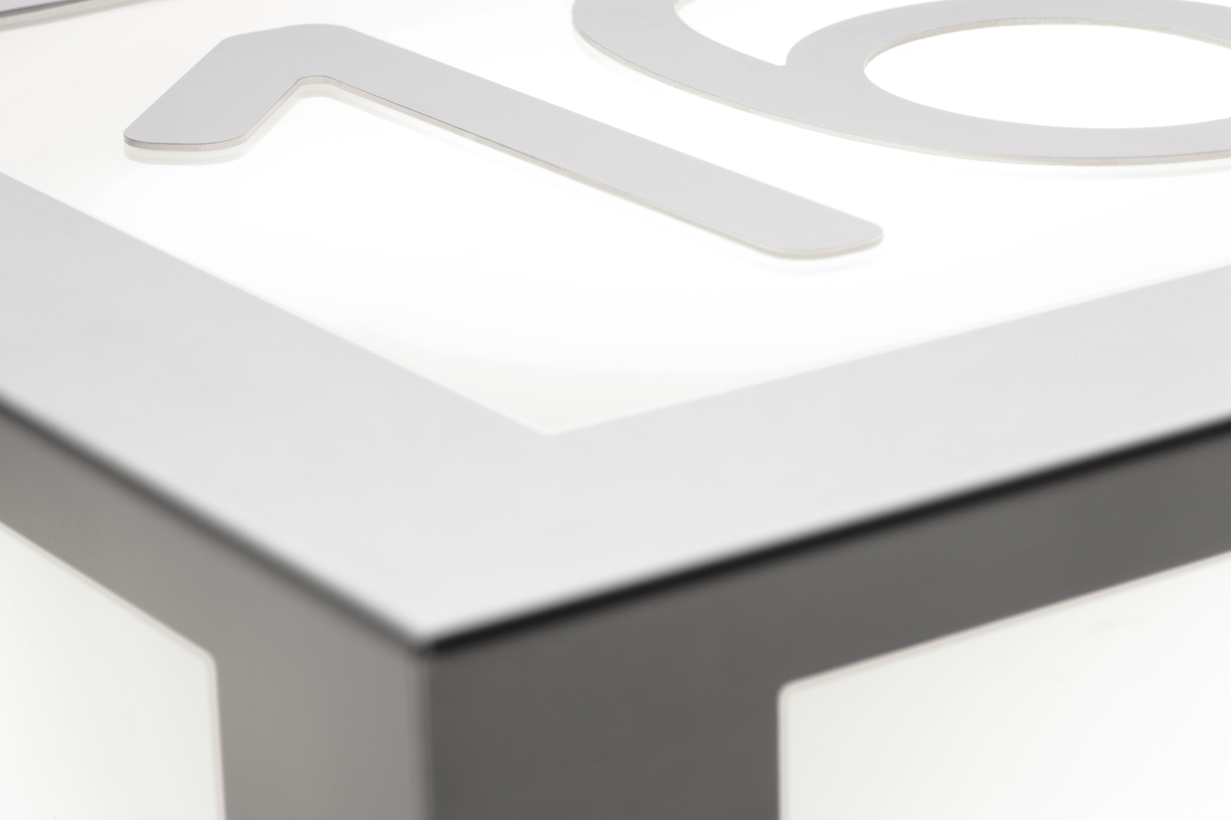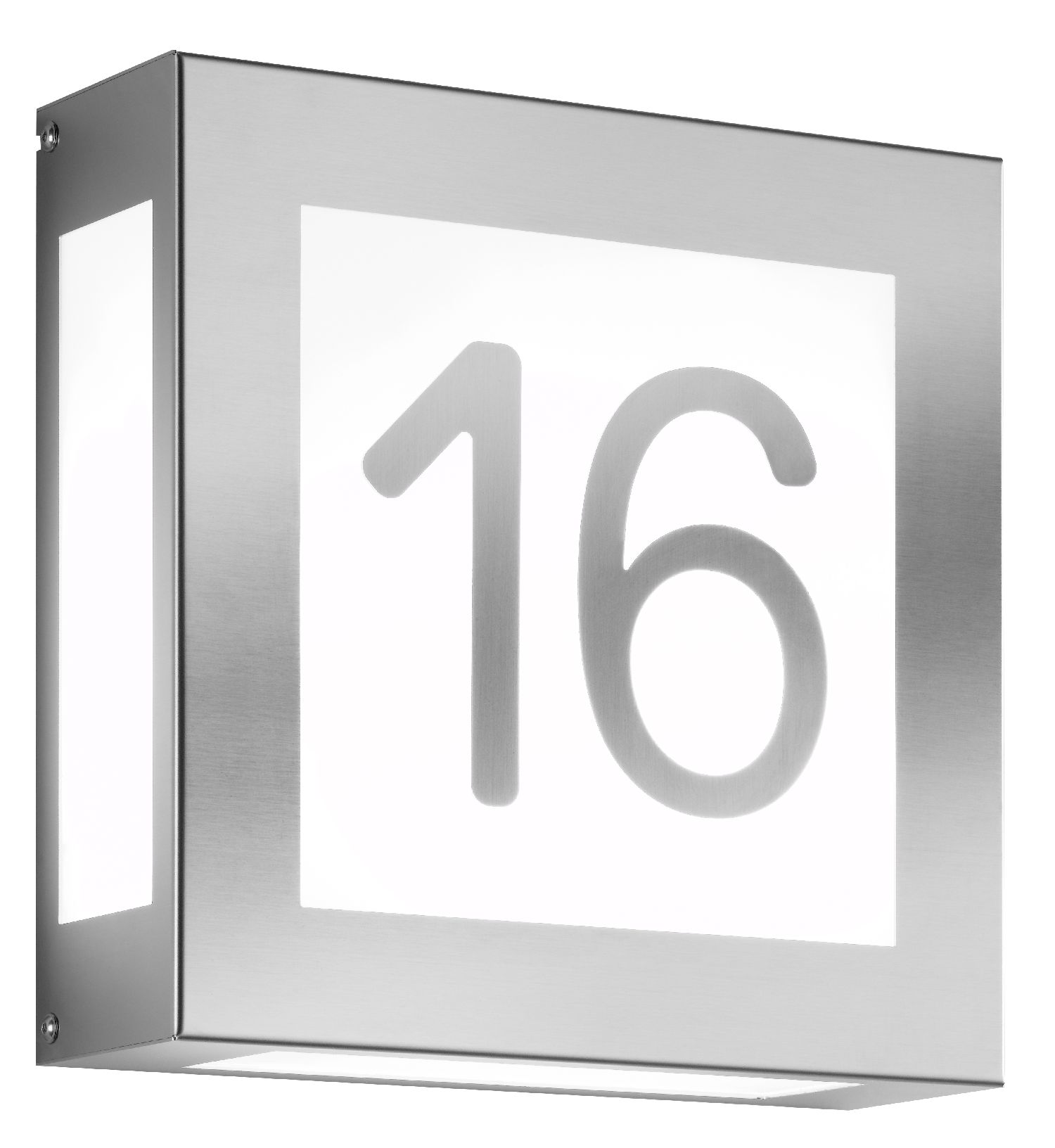 Die Haus-Nr. Leuchte Aqua Legendo 42 von CMD besteht aus hochwertigem, gebürsteten Edelstahl mit echtem Opalglas und Edelstahl-Ziffern. Bis zu 2 Ziffern / Buchstaben sind möglich.