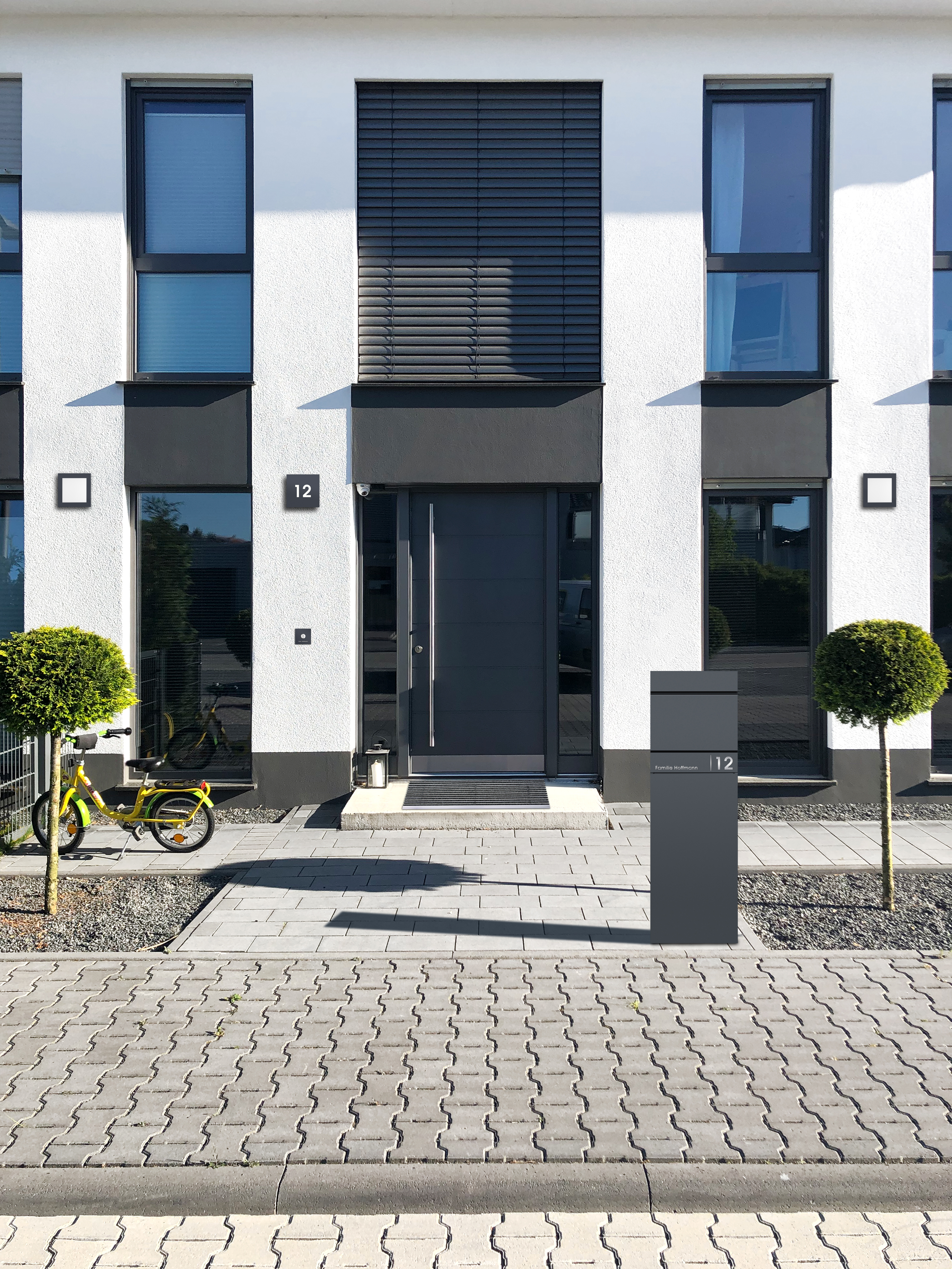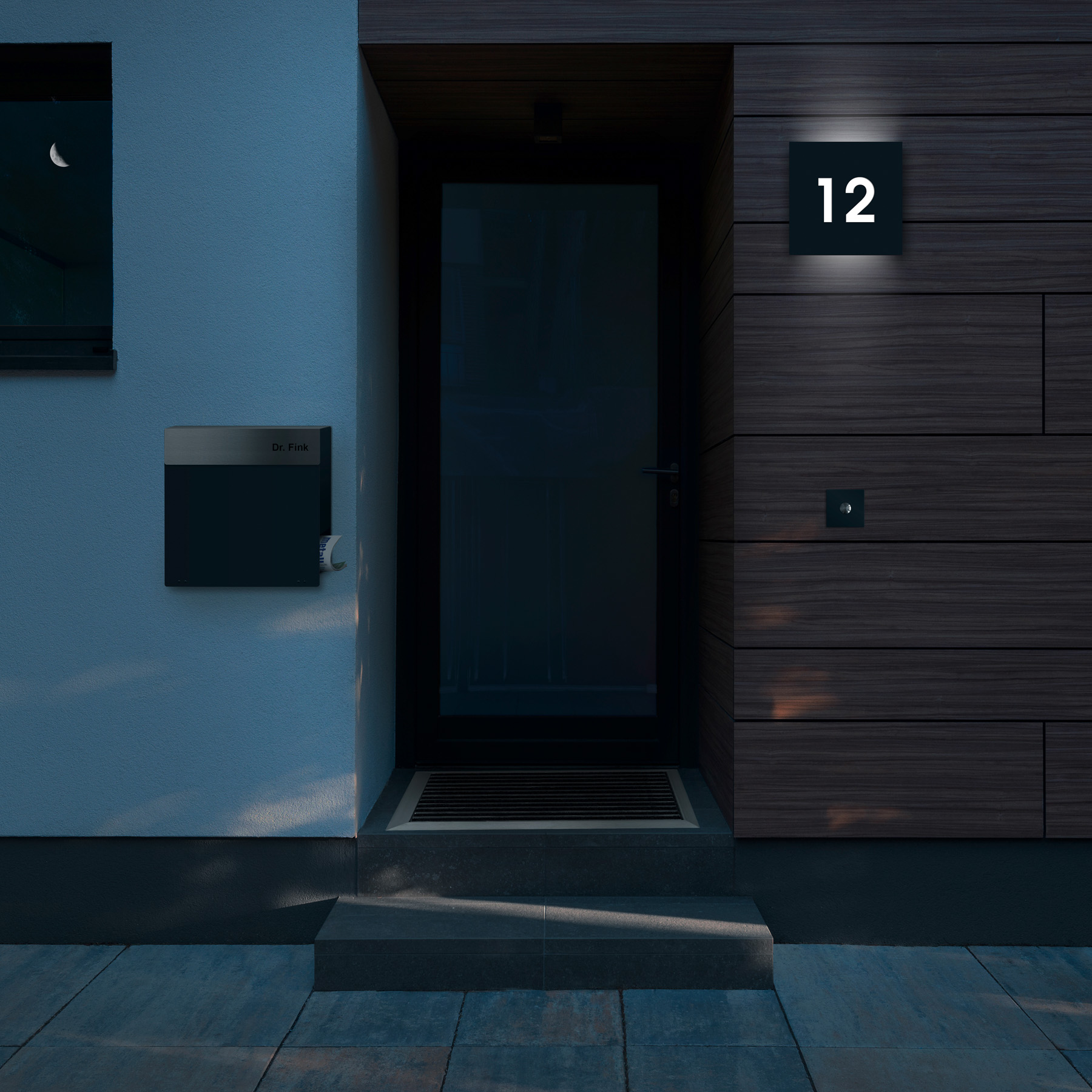 Eine leuchtende Hausnummer erfreut jeden Besucher, der im Dunkeln eine ihm noch unbekannte Adresse sucht. Die Haus-Nr. wird ausgelasert, mit schlagfestem, weißen Acryl hinterlegt und bildet so einen optimalen Kontrast zum farbig lackierten Korpus. Optional kann die Leuchte mit einem Dämmerungsschalter ausgestattet werden. Dieser sorgt dafür, dass die Leuchte sich automatisch bei Dunkelheit einschaltet: und bei Helligkeit wieder ausgeht. So ersparen Sie sich ein manuelles ein-/ausschalten.