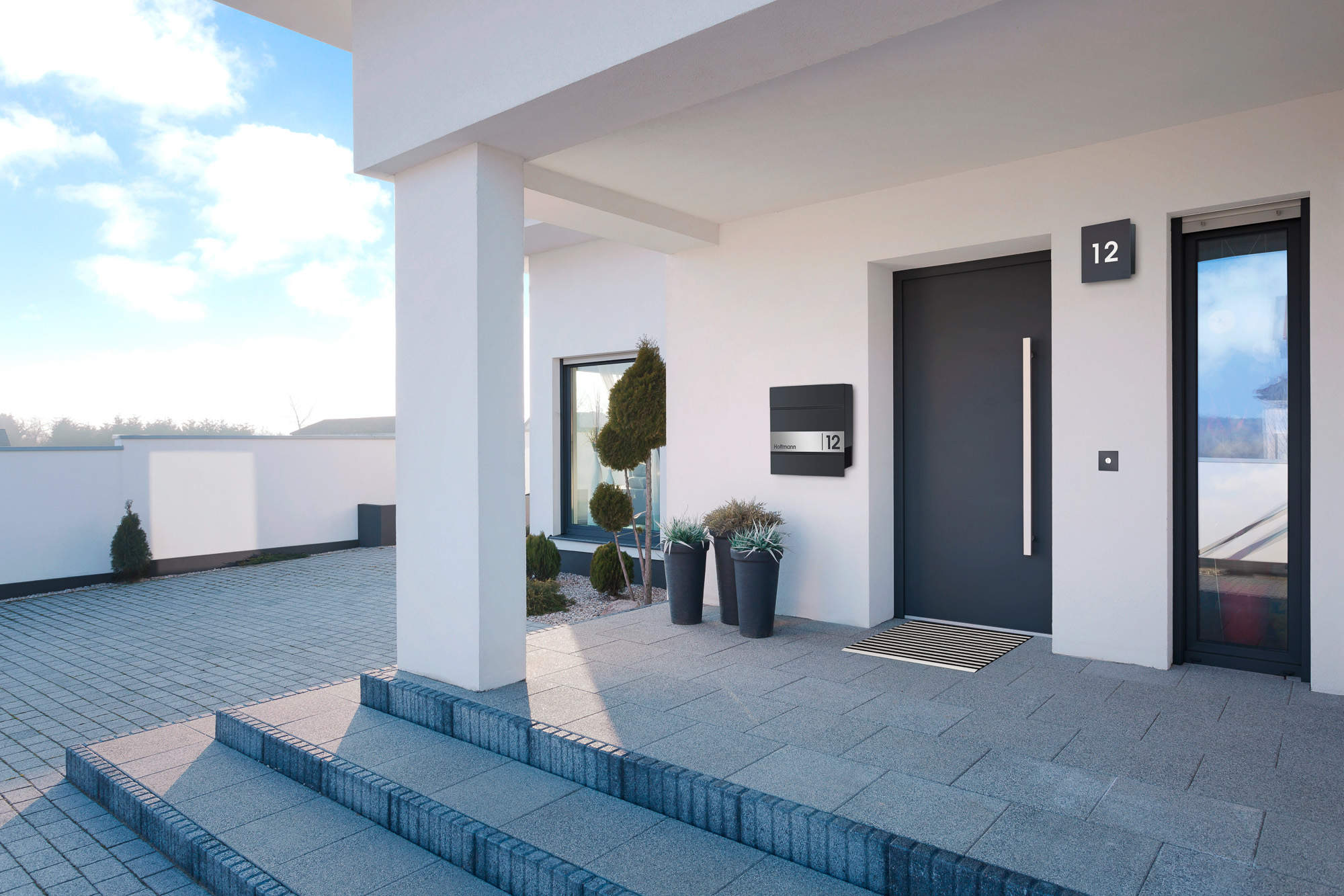 - Zylinderschloss elegant verborgen unter der Einwurfklappe – geschützt vor Schmutz und Nässe.