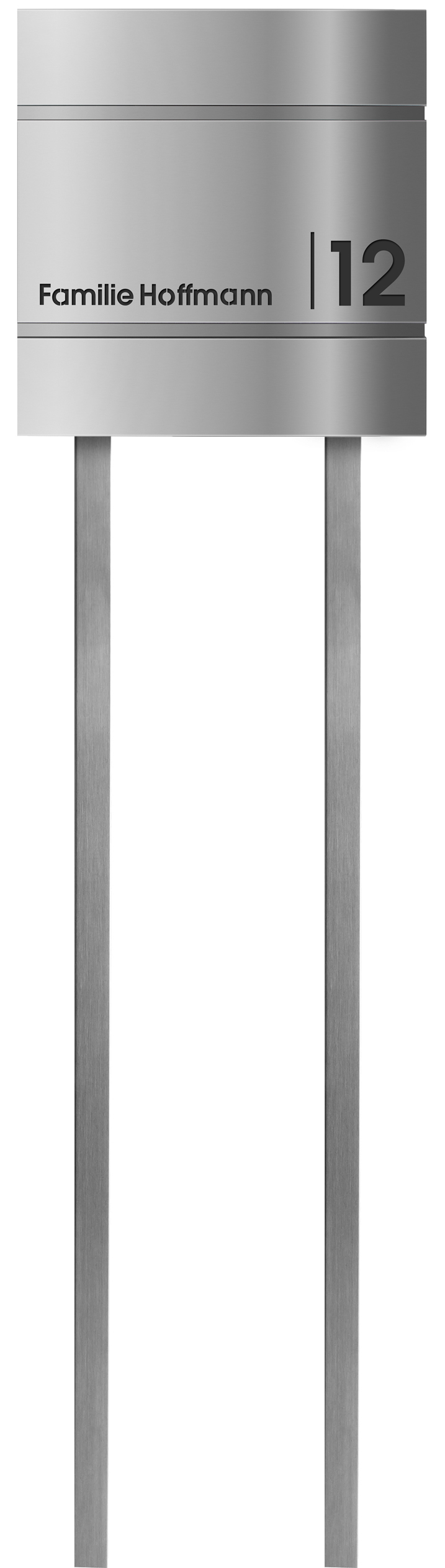 Bei der ®frabox-Lasercut 7-Beschriftung wird durch einen Präzisionslaser das Edelstahl ausgeschnitten und anschließend eine in RAL 7016 anthrazitgrau lackierte Metallplatte hinter der Laserschrift angebracht. So entsteht ein edler, einzigartiger 3D-Effekt.