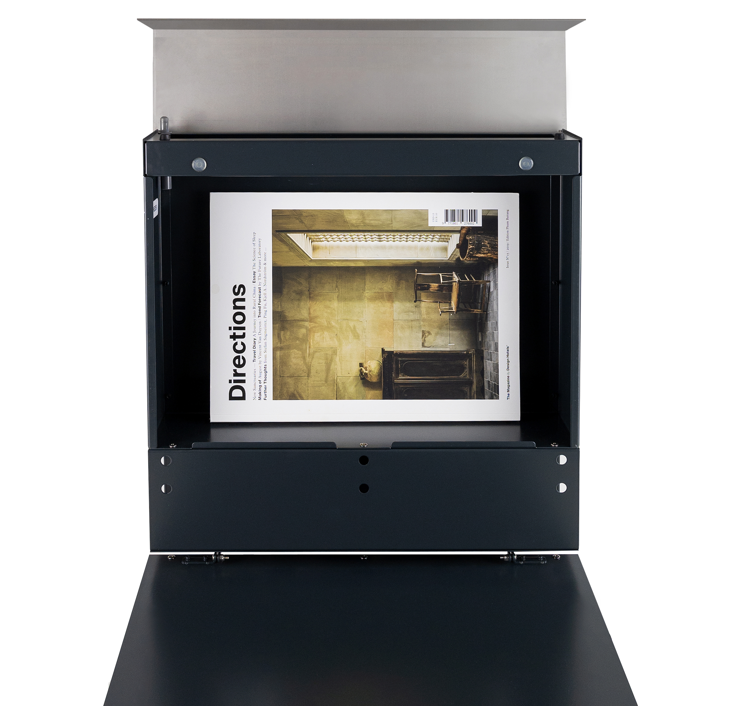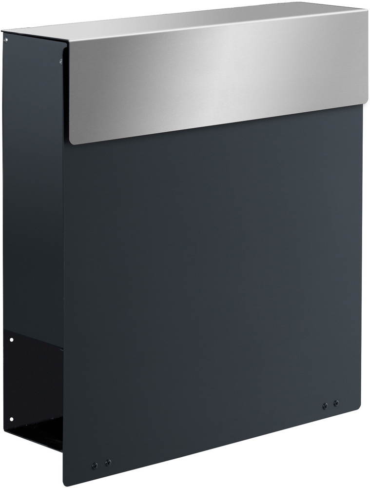 Der Designer Briefkasten NAMUR wird aus lackiertem, verzinktem Stahl sowie einer Einwurfklappe aus hochwertigem Edelstahl gefertigt und ist ein wahres Design Kunstwerk. Er harmoniert durch seine klaren Linien und seine geradlinige Optik perfekt mit seiner Umgebung. Das moderne Design kombiniert mit hochwertigen Materialien und präziser Verarbeitung garantiert Ihnen lange Freude an diesem schönen Briefkasten. Das Schloß befindet sich witterungsgeschützt unterhalb der Einwurfklappe. Der Einwurf erfolgt von oben, die Postentnahme erfolgt auf der Frontseite. Mit insgesamt 8,5 Litern Fassungsvermögen bietet NAMUR viel Platz für Ihre Post. Zusätzlich ist unten ein Zeitungsfach integriert, sodass Ihre Zeitungen separat verstaut sind und auch ohne Briefkastenschlüssel entnommen werden können. Montagematerial für die Wandbefestigung sowie eine Montageanleitung sind im Lieferumfang enthalten. Optional ist die Verschlusskappe NAMUR separat erhältlich, damit eine der beiden offenen Seiten des Zeitungsfachs verschlossen werden kann.