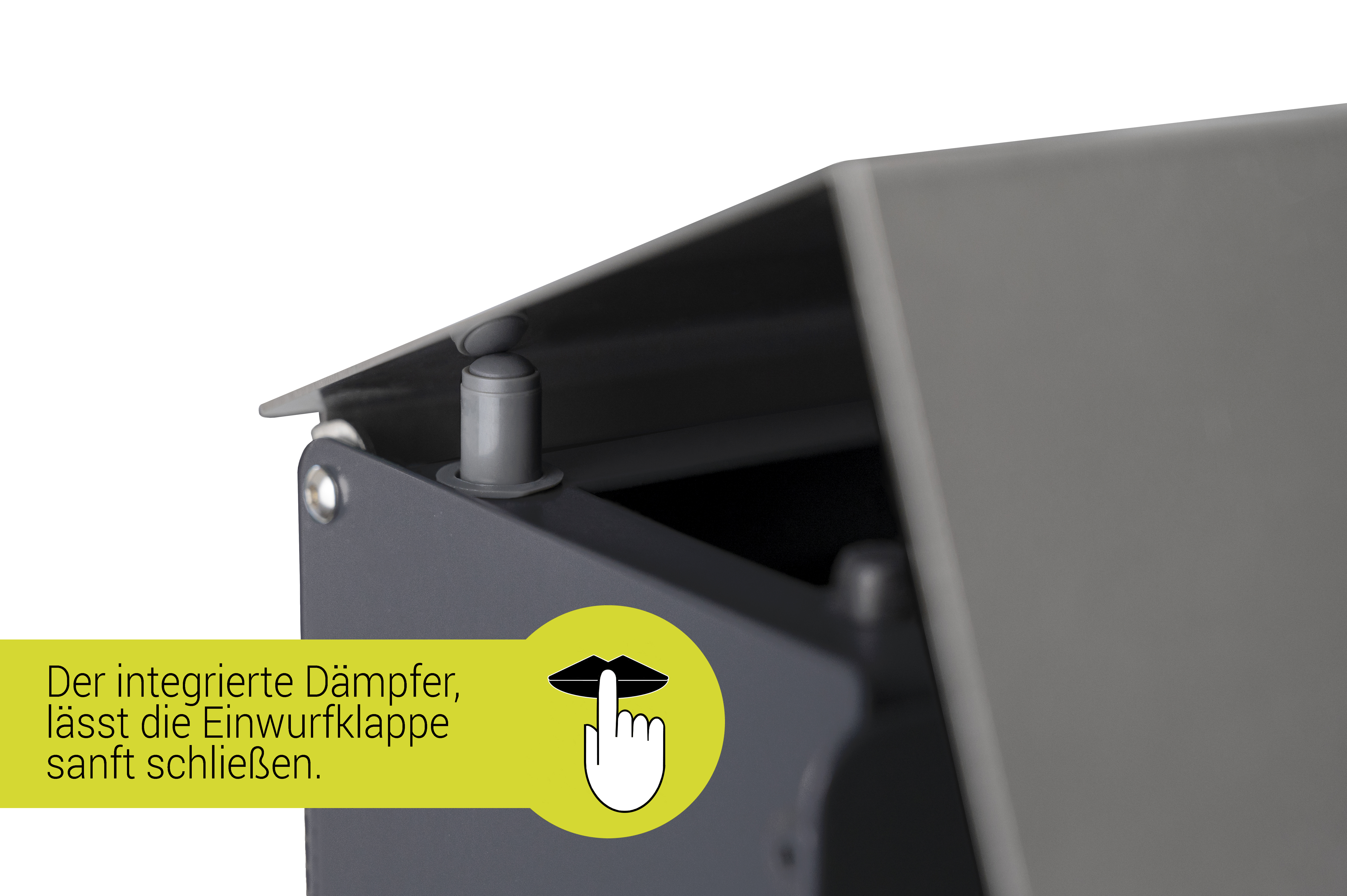 Der Briefkasten entspricht der aktuellen EN Norm 13724. Geschütztes Design: eingetragen beim Deutschen Patent- und Markenamt sowie beim Amt der Europäischen Union für geistiges Eigentum.