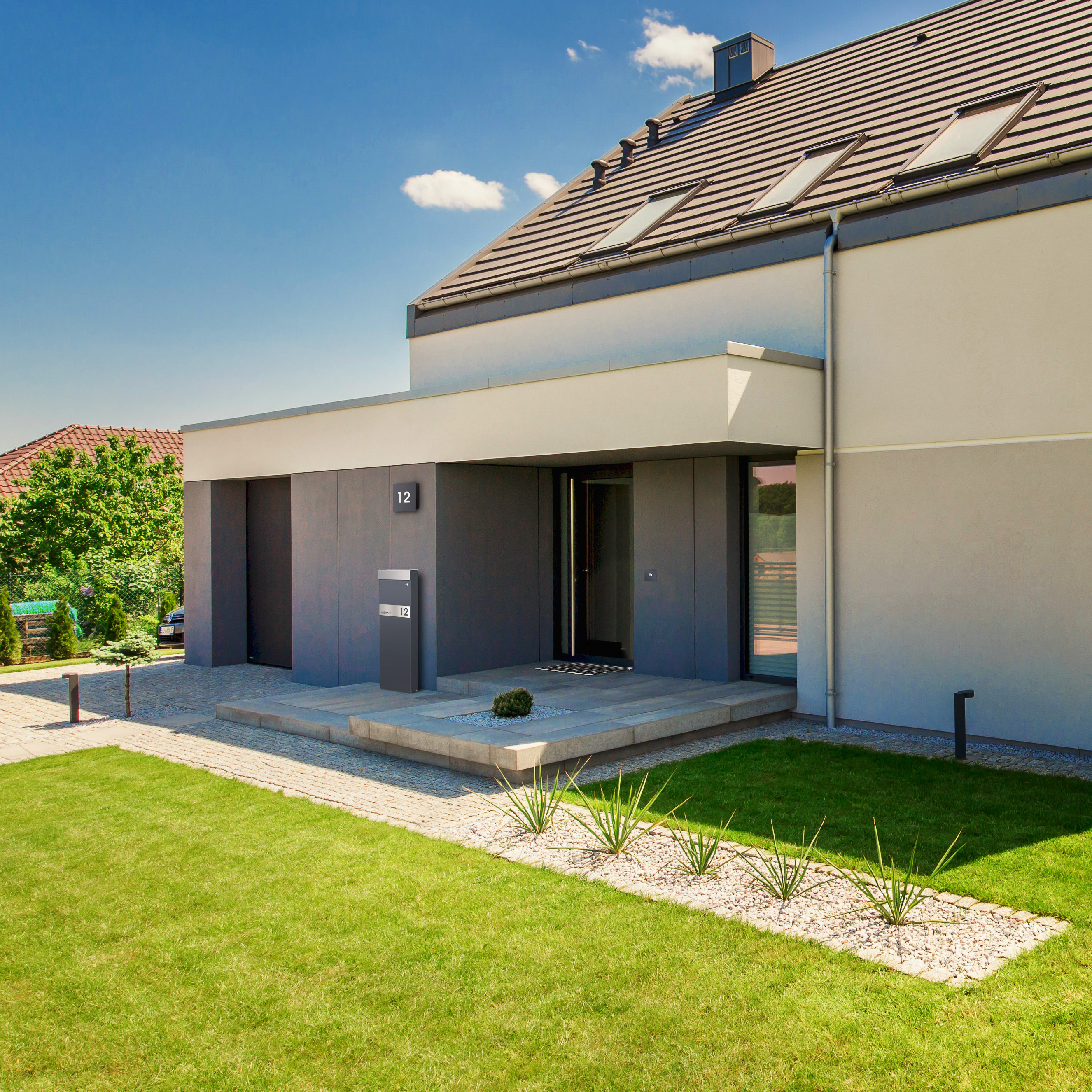 Der Design Standbriefkasten NAMUR wird aus verzinktem, lackiertem Stahl sowie einer Einwurfklappe aus hochwertigem Edelstahl gefertigt und ist ein wahres Design Kunstwerk. Er harmoniert durch seine klaren Linien und seine geradlinige Optik perfekt mit seiner Umgebung. Das moderne Design kombiniert mit hochwertigen Materialien und präziser Verarbeitung garantiert Ihnen lange Freude an diesem schönen Briefkasten. Das Schloss befindet sich witterungsgeschützt unterhalb der sanft schließenden, fallgedämpften Einwurfklappe. Der Einwurf erfolgt von oben, die Postentnahme erfolgt auf der Frontseite. Mit insgesamt 18,5 Litern Fassungsvermögen bietet NAMUR viel Platz für Ihre Post sowie Zeitungen und Zeitschriften.