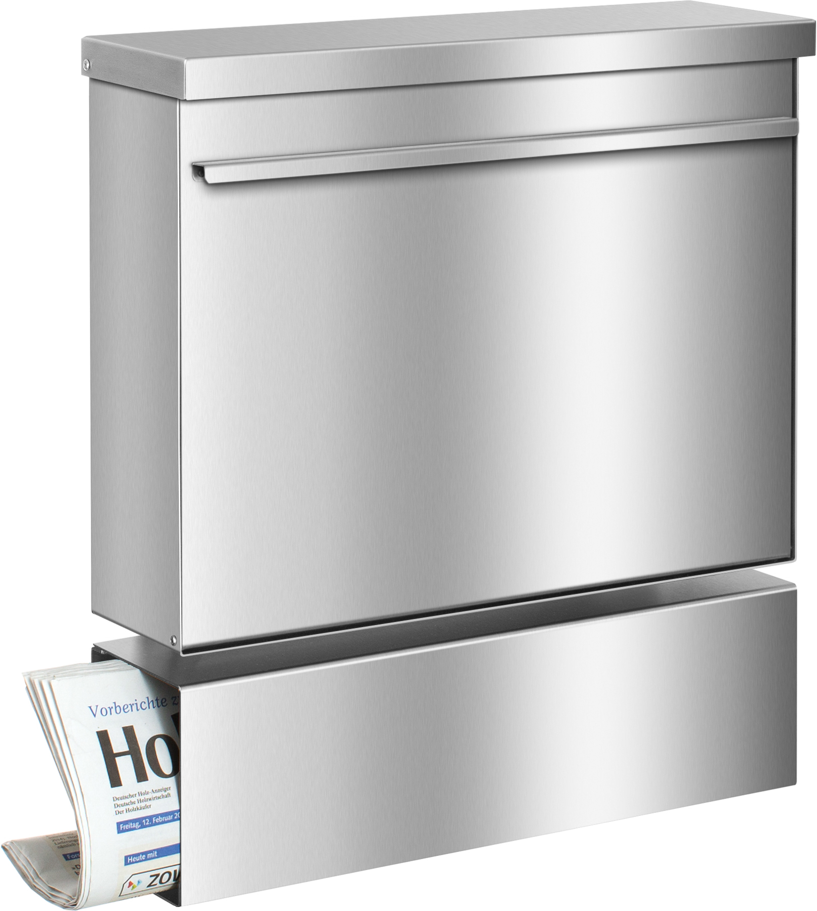 Das optional erhältliche Zeitungsfach ermöglicht Ihnen das separate Aufbewahren Ihrer Zeitungen, sodass diese auch ohne Briefkastenschlüssel entnommen werden können. Separat hierzu ist ein Verschluss für das Zeitungsfach erhältlich, mit dem eine Seite des Zeitungsfachs verschlossen werden kann.
