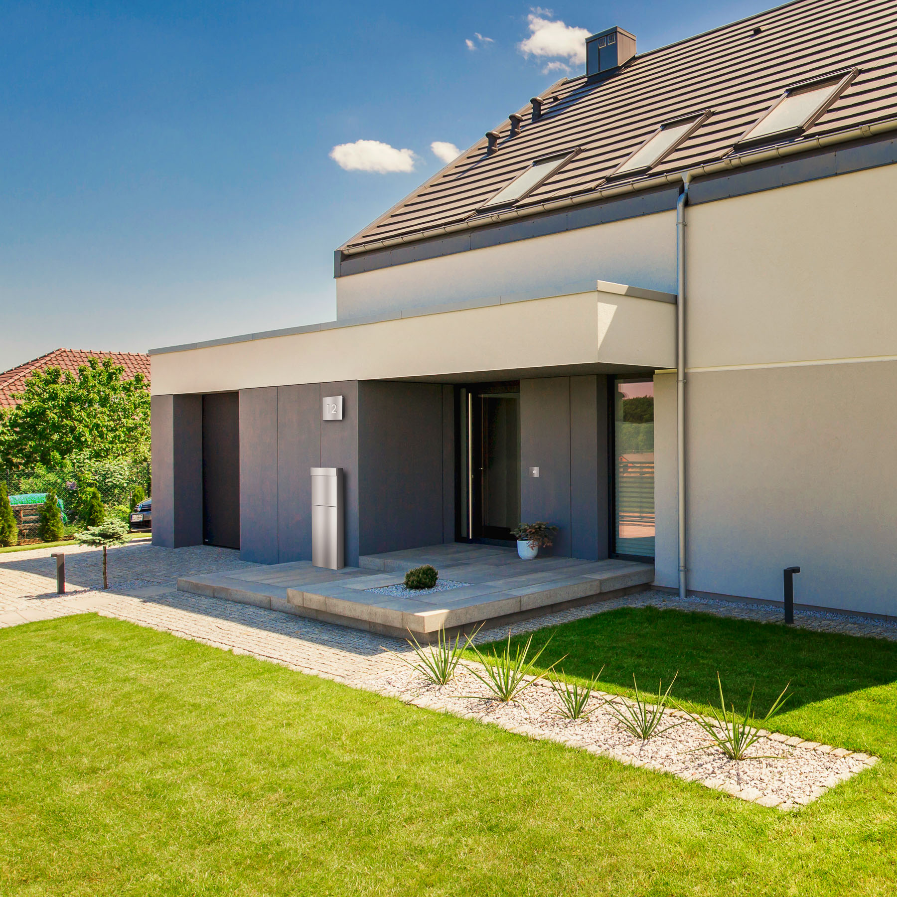 Der Design Standbriefkasten NAMUR wird aus hochwertigem Edelstahl gefertigt und ist ein wahres Design Kunstwerk: Er harmoniert durch seine klaren Linien und seine geradlinige Optik perfekt mit seiner Umgebung. Das moderne Design kombiniert mit hochwertigen Materialien und präziser Verarbeitung garantiert Ihnen lange Freude an diesem schönen Briefkasten. Das Schloss befindet sich witterungsgeschützt unterhalb der sanft schließenden, fallgedämpften Einwurfklappe. Der Einwurf erfolgt von oben, die Postentnahme erfolgt auf der Frontseite. Mit insgesamt 18,5 Litern Fassungsvermögen bietet LENS viel Platz für Ihre Post sowie Zeitungen und Zeitschriften.