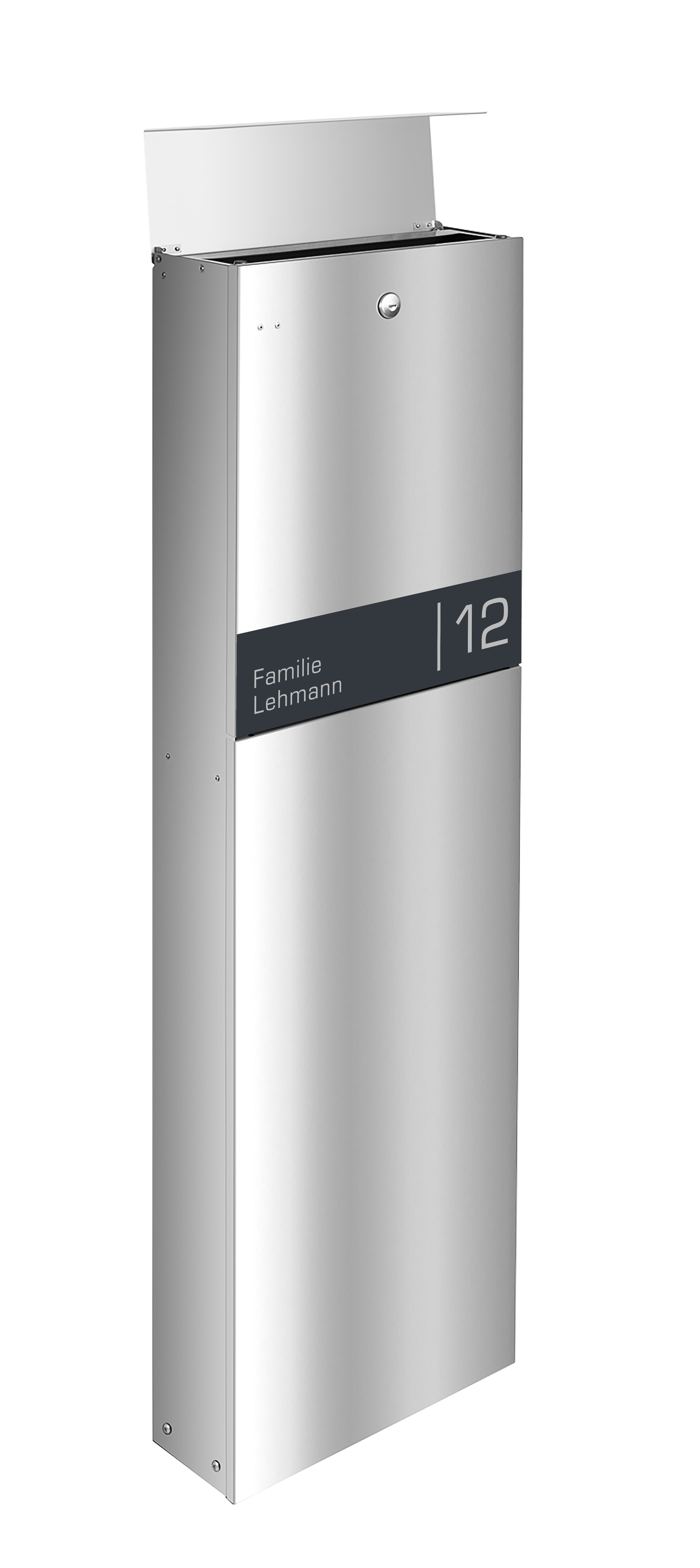 Bei der Frabox® Lasergravur wird Ihr Name und Ihre Hausnummer aus der lackierten Namensschildplatte ausgelasert, wodurch der Edelstahluntergrund zum Vorschein kommt. Die gravierte Namensschildplatte wird separat mitgeliefert und kann so flexibel an der gewünschten Position angebracht werden.