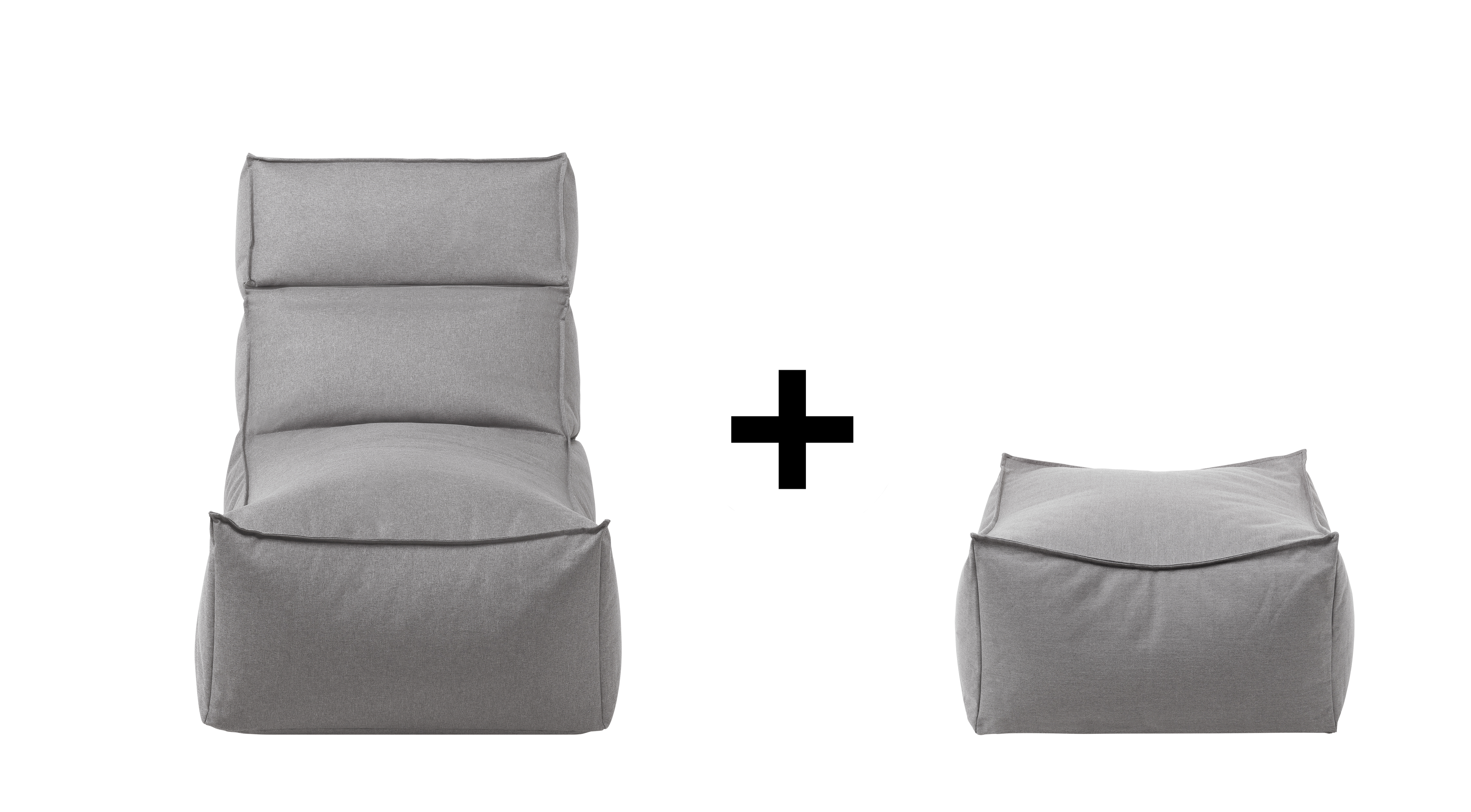 Mit dem Sitzpouf können Sie die Liegefläche verlängern. Durch die leichten Materialien können die Möbel bequem auf der Terrasse, im Innenhof oder im Garten bewegt werden - aber auch im Wohnzimmer oder Wintergarten, wenn sich das Wetter ändert und eine Innenraumnutzung attraktiver wird.