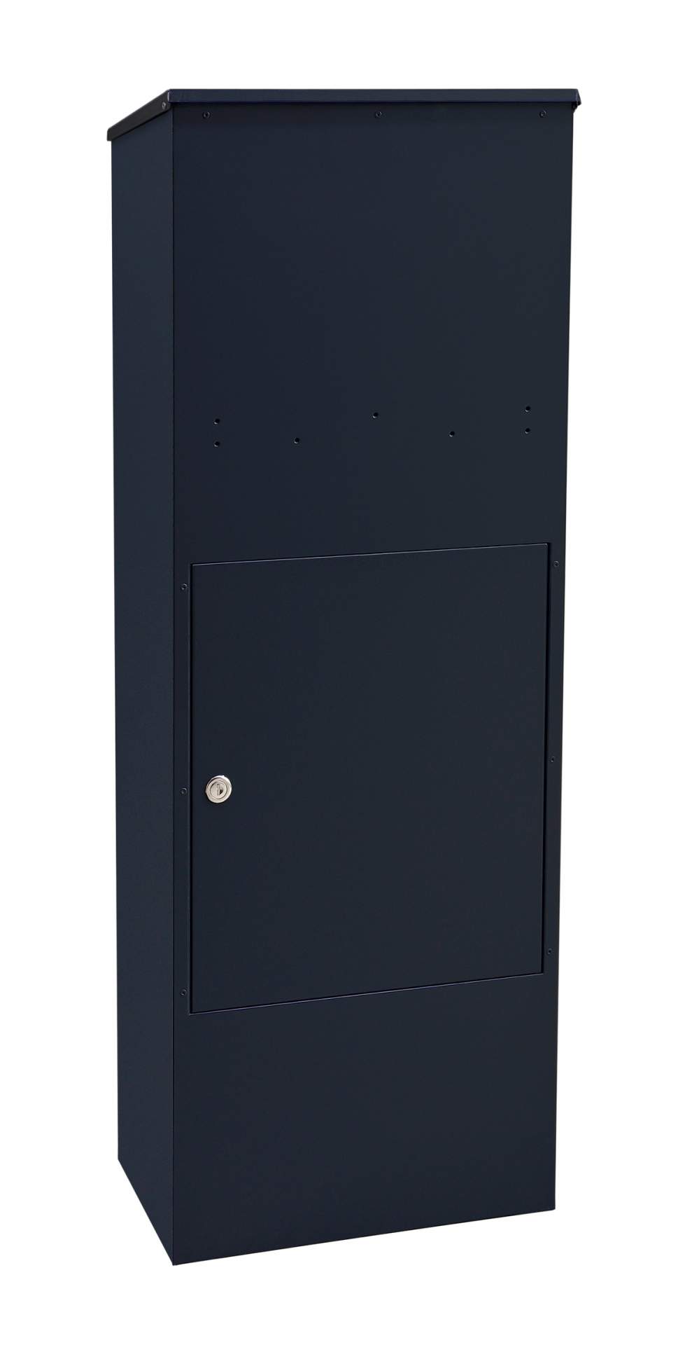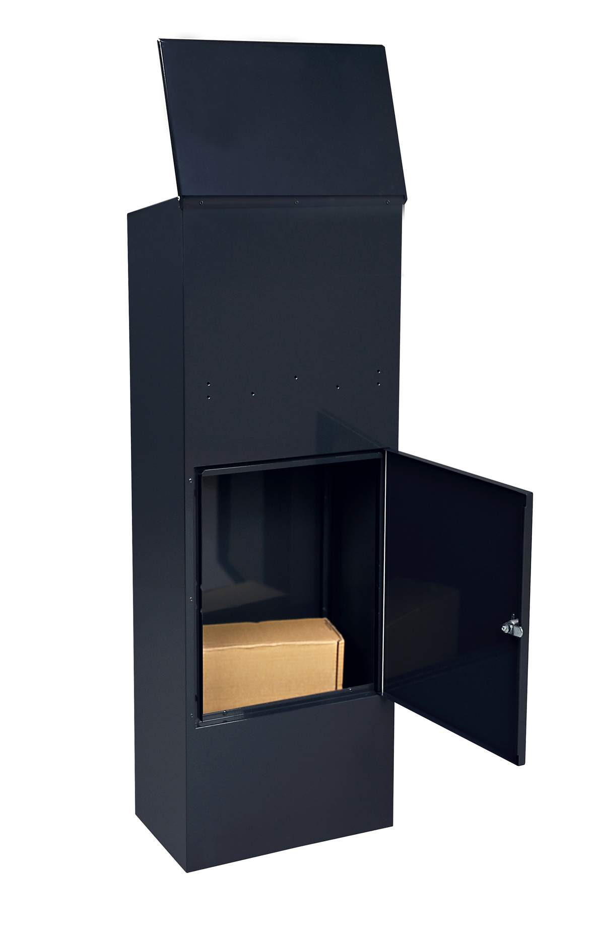 Der im Kasten befindliche Zwischenboden kann entfernt und so das Volumen bei Bedarf vergrößert werden. So kann der Kasten vollständig für Post genutzt werden. Die Post- und Päckchenentnahme erfolgt über die abschließbare Drehtür. Zur Montage wird der Briefkasten einfach auf ein vorhandenes Fundament aufgeschraubt, um ihn vor Diebstahl zu schützen.