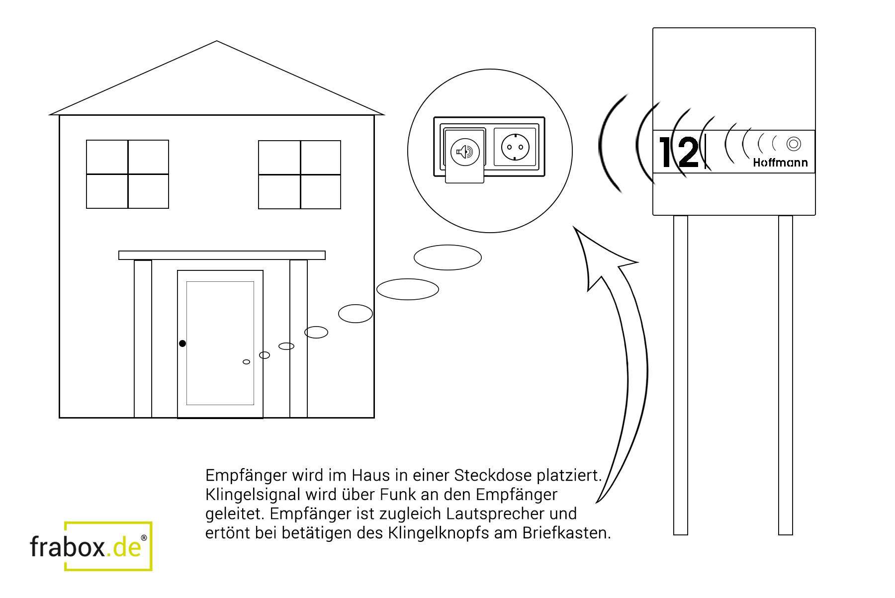 Dieser Frabox Design Briefkasten SKIVE verfügt über einen hochwertigen Edelstahl-Klingeltaster mit Funksender. Die Reichweite beträgt im Praxiseinsatz ca. 50 Meter (freies Feld ca. 100 Meter). Sie brauchen nur noch den mitgelieferten Empfänger zu Hause in die Steckdose stecken – schon ist der Frabox-Standbriefkasten mit Funkklingel einsatzbereit! Zur Auswahl stehen übrigens 50 verschiedene Klingeltöne, die Sie einstellen können.