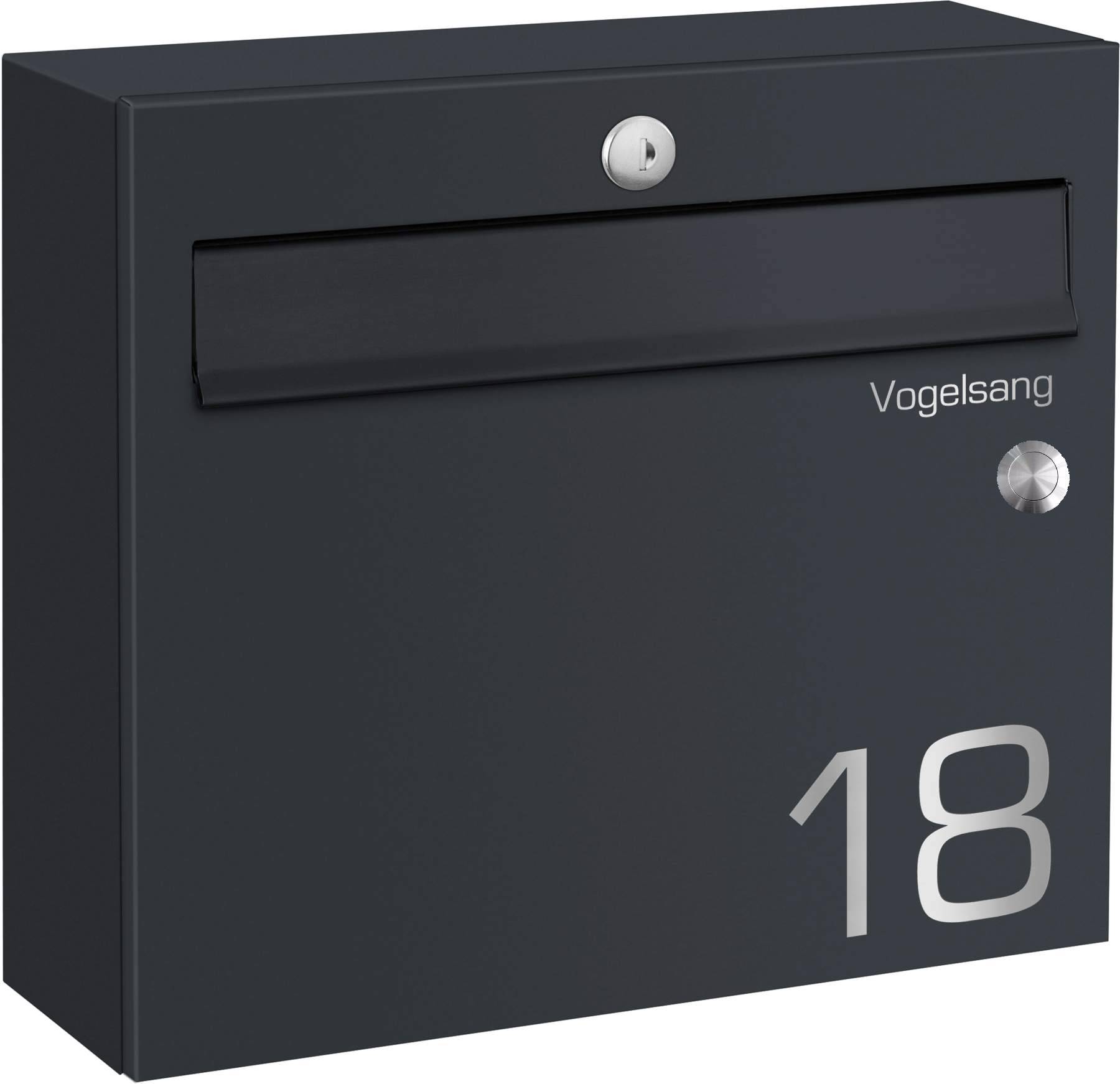 Der Briefkasten entspricht der aktuellen EN Norm 13724. Geschütztes Design: eingetragen beim Deutschen Patent- und Markenamt sowie beim Amt der Europäischen Union für geistiges Eigentum.