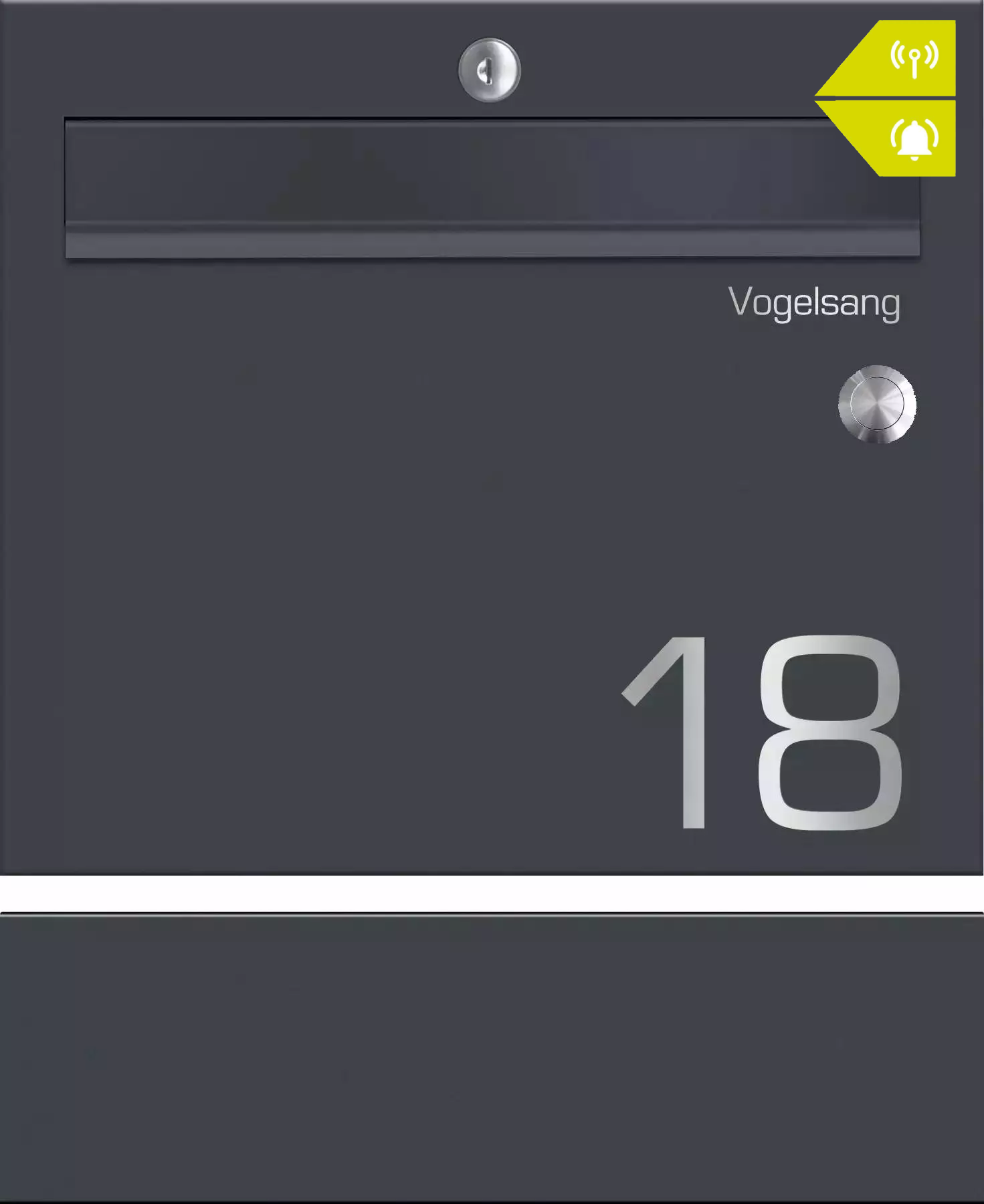 Der Briefkasten entspricht der aktuellen EN Norm 13724. Geschütztes Design: eingetragen beim Deutschen Patent- und Markenamt sowie beim Amt der Europäischen Union für geistiges Eigentum.