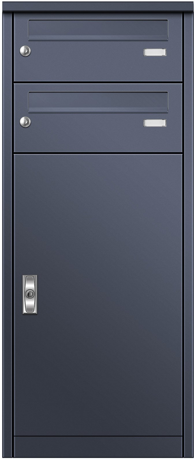 Das Paketfach ist zustellerunabhängig und mit einem speziellen Schloß, dem CLEVERLOCK, ausgestattet. CLEVERLOCK ist ein mechanisches Paketschloss: die Tür ist geschlossen, aber das Paketfach für den Zusteller dennoch zugänglich und belieferbar. Nachdem das Paket hineingelegt wurde, verriegelt der Zusteller die Tür mit einem einfachen Klick. Das Paketfach kann nun erst wieder durch den Eigentümer mit Hilfe seines Schlüssels geöffnet werden. Smart & sicher zugleich! Und im separaten Briefkasten findet Ihre Post ausreichend Platz!