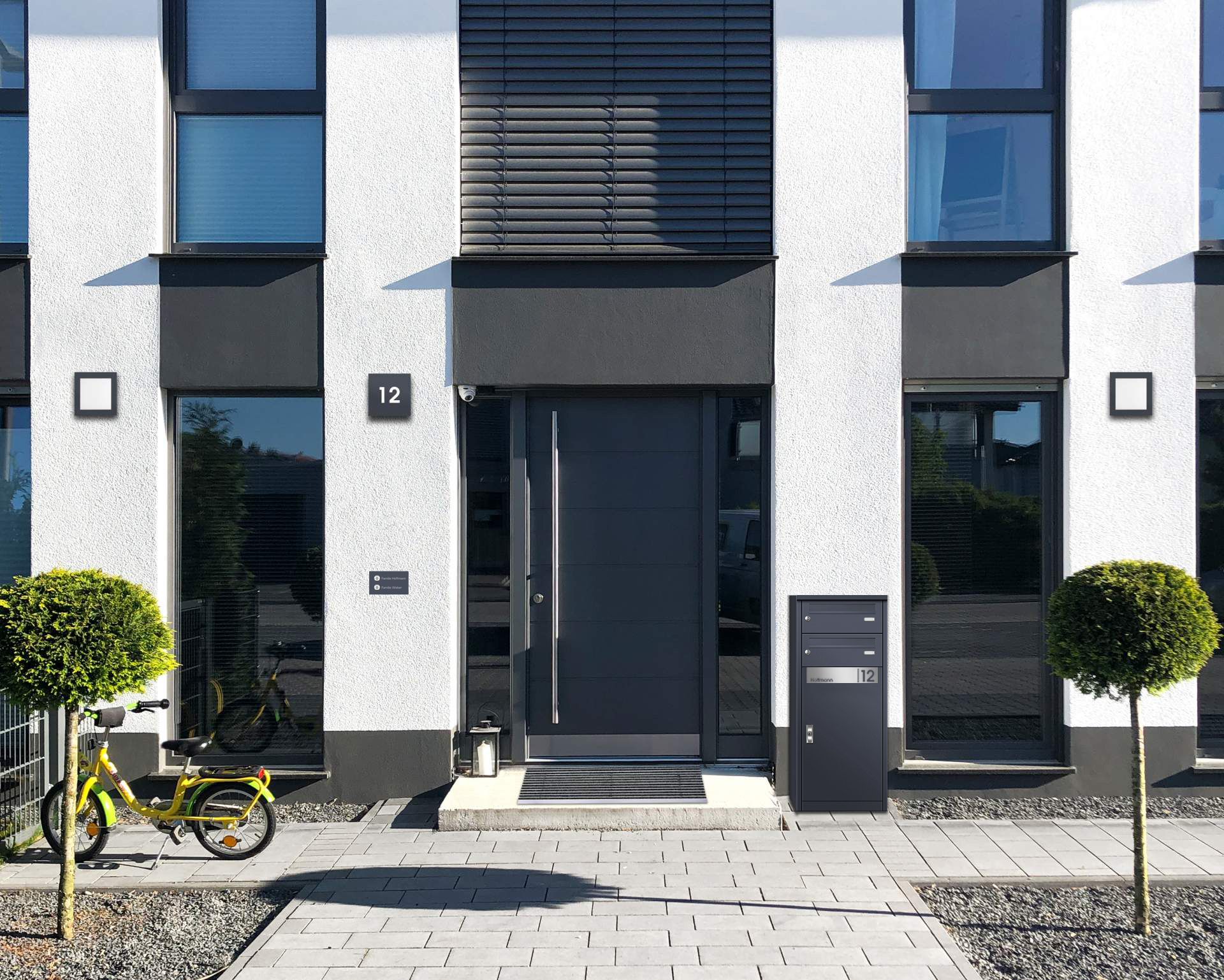 - Briefkasten: 400 x 165 x 38 mm (BxHxT), je 2 Schlüssel inkl.
