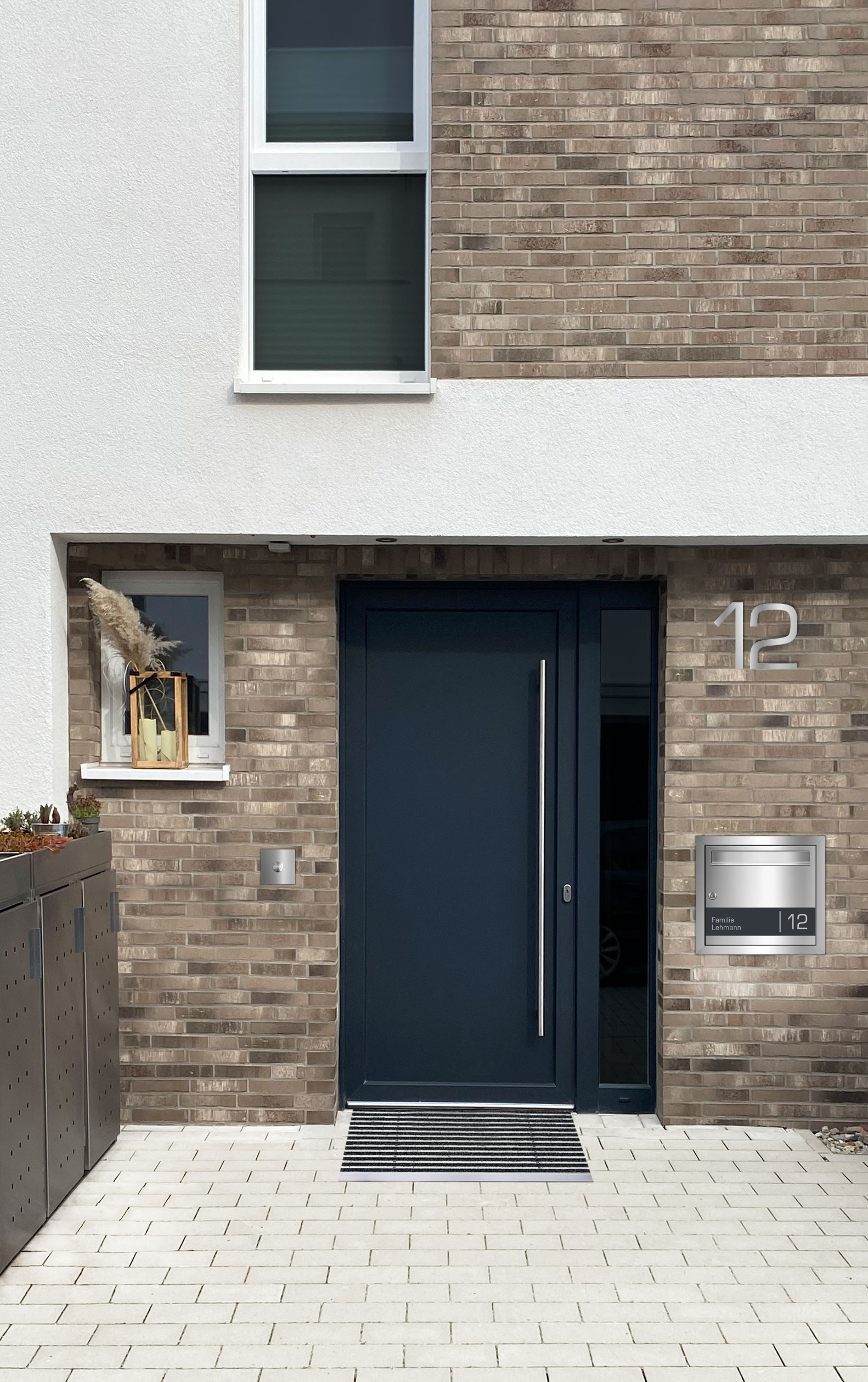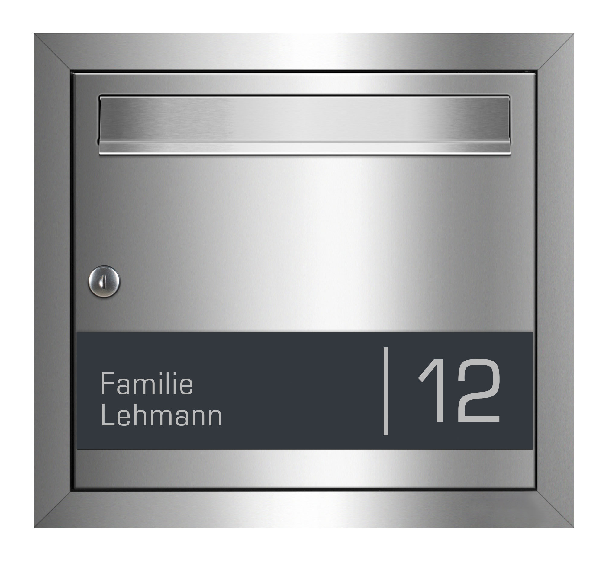 Bei der Frabox® Lasergravur wird Ihr Name und Ihre Hausnummer aus der lackierten Namensschildplatte ausgelasert, wodurch der Edelstahluntergrund zum Vorschein kommt. Anschließend wird die Namensschildplatte mithilfe von speziell entwickelten Schablonen millimetergenau angebracht. Dieser Vorgang erfordert besondere Sorgfalt seitens erfahrener Mitarbeiter, um ein perfektes Ergebnis zu erzielen.