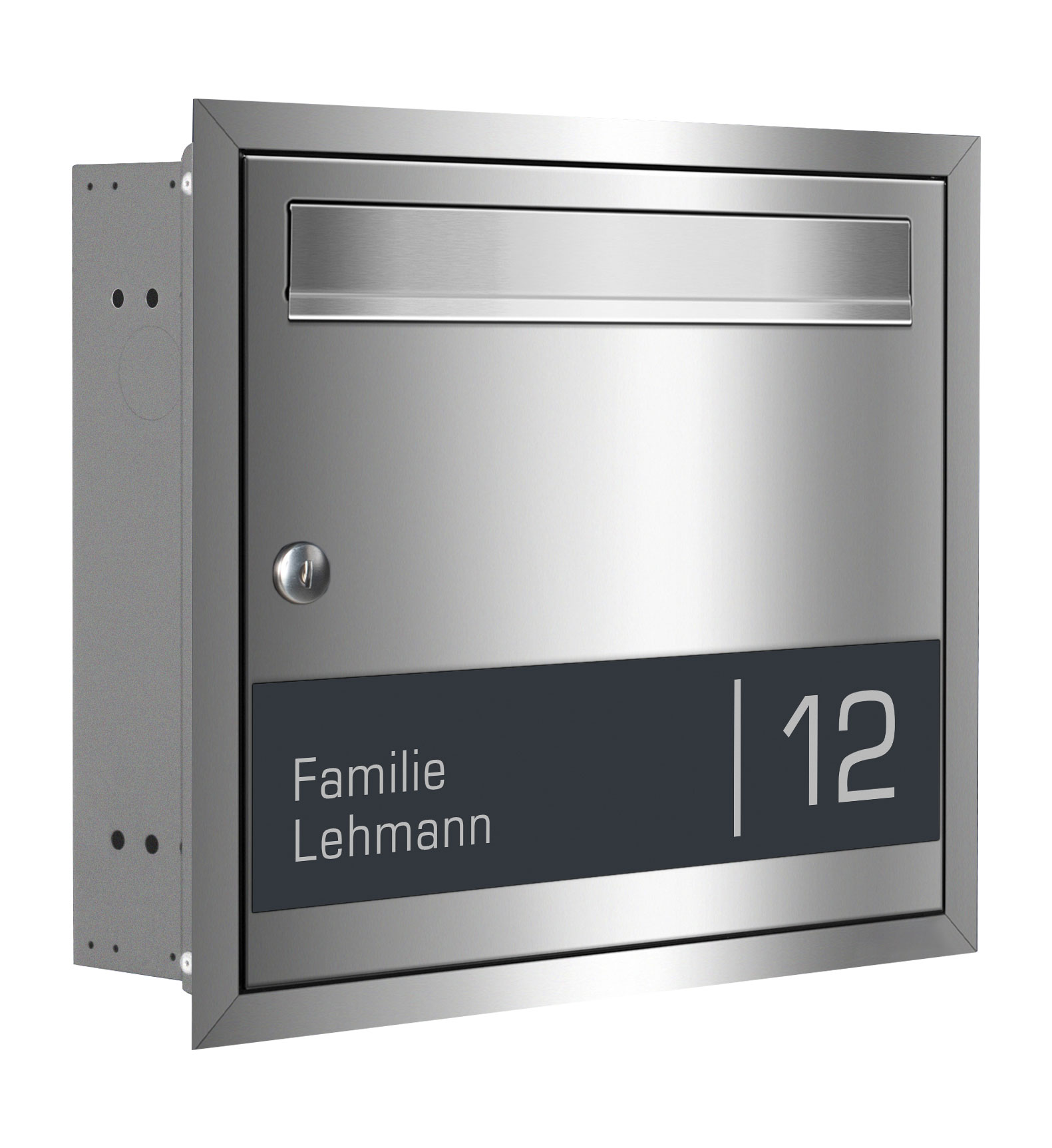 Der hochwertig verarbeitete Briefkasten OLEVA ist für die Montage unterputz vorgesehen. Ein umlaufender Putzabdeckrahmen sorgt für einen sauberen Abschluss zur Wand.