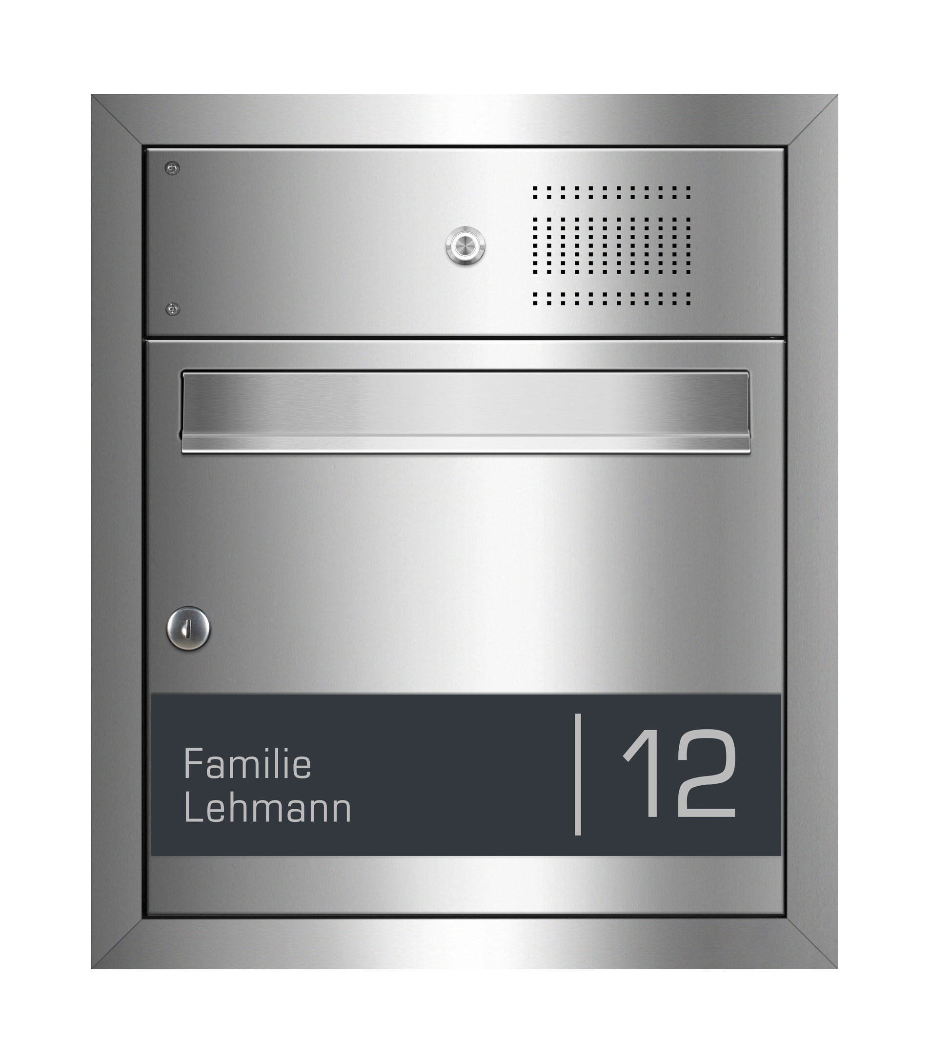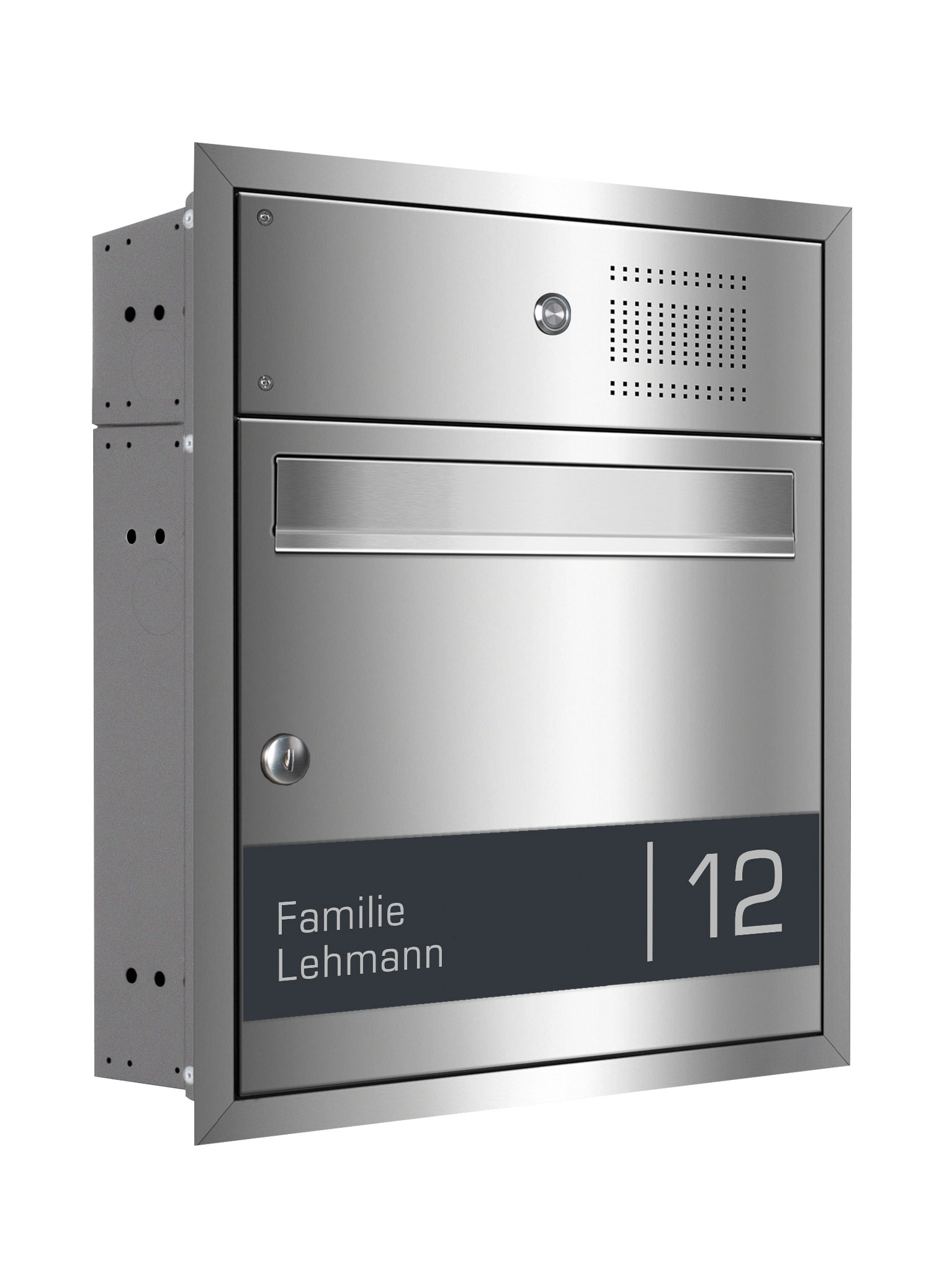 Mit Antivandalismus-Klingeltaster sowie Sprechsieb mit Universaladapter auf der Rückseite zum Einbau jeder handelsüblichen Gegensprechanlage.