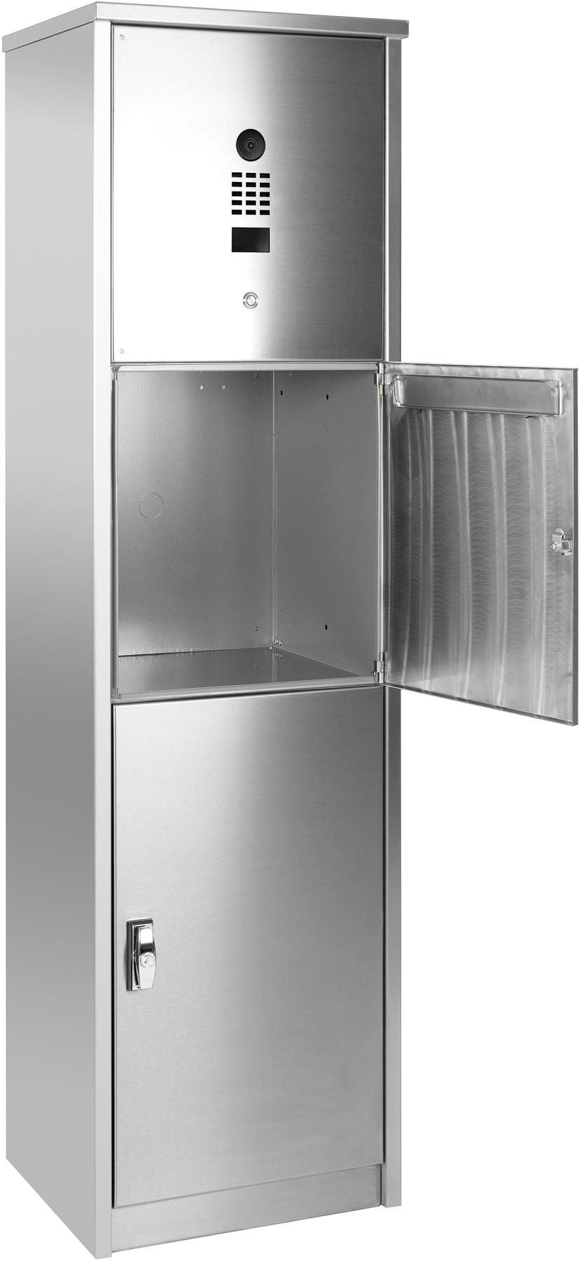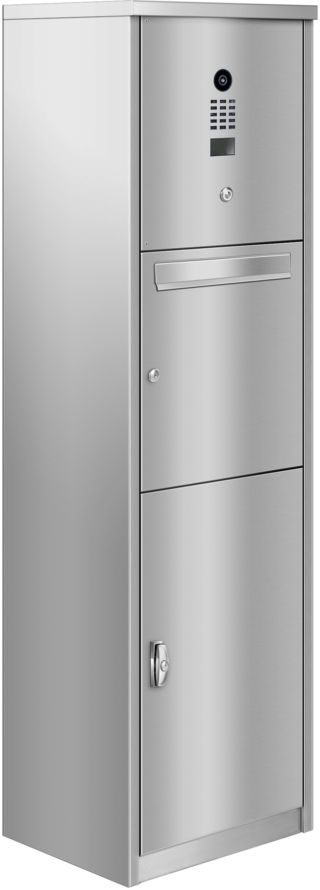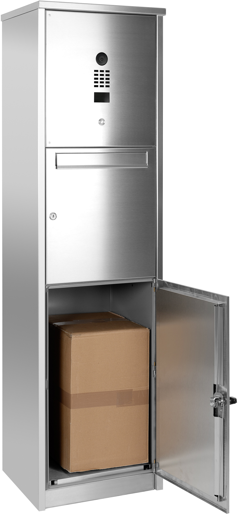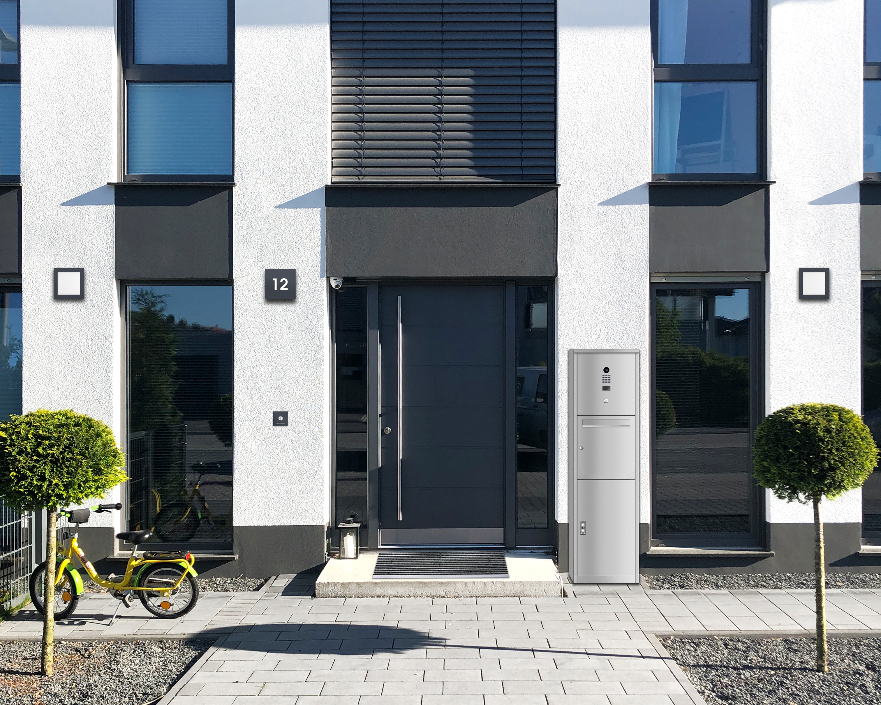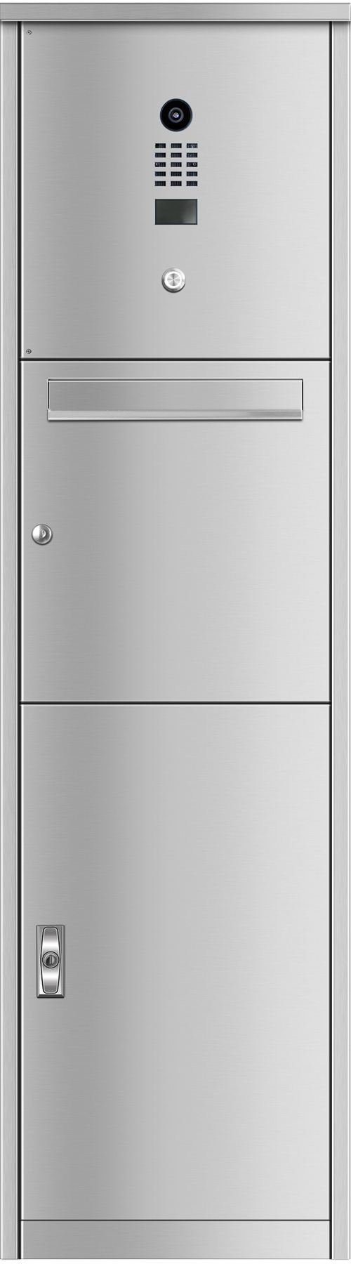 Das Paketfach ist zustellerunabhängig und mit einem speziellen Schloß, dem CLEVERLOCK, ausgestattet. CLEVERLOCK ist ein mechanisches Paketschloss: die Tür ist geschlossen, aber das Paketfach für den Zusteller dennoch zugänglich und belieferbar. Nachdem das Paket hineingelegt wurde, verriegelt der Zusteller die Tür mit einem einfachen Klick. Das Paketfach kann nun erst wieder durch den Eigentümer mit Hilfe seines Schlüssels geöffnet werden. Smart & sicher zugleich! Und im separaten Briefkasten findet Ihre Post ausreichend Platz!