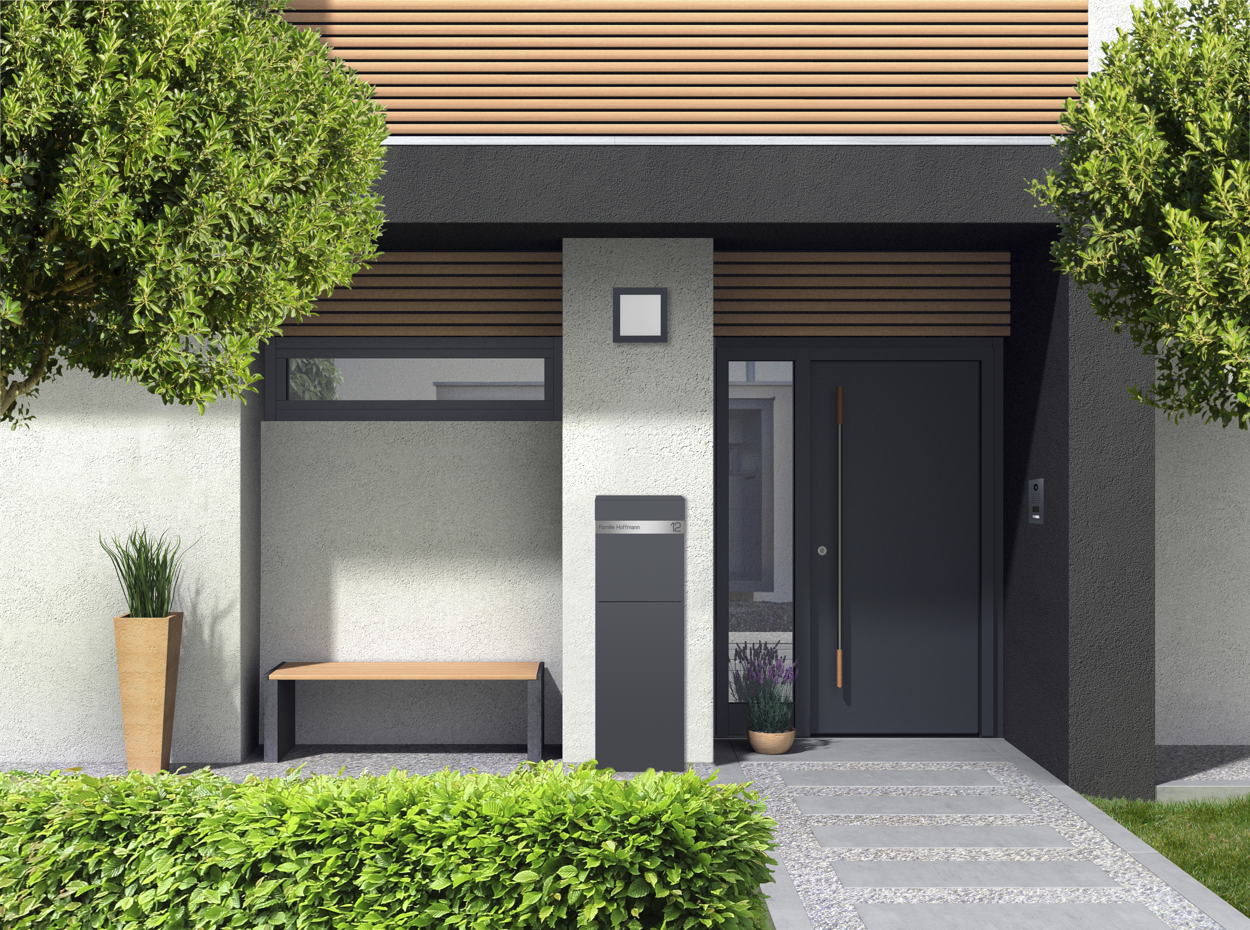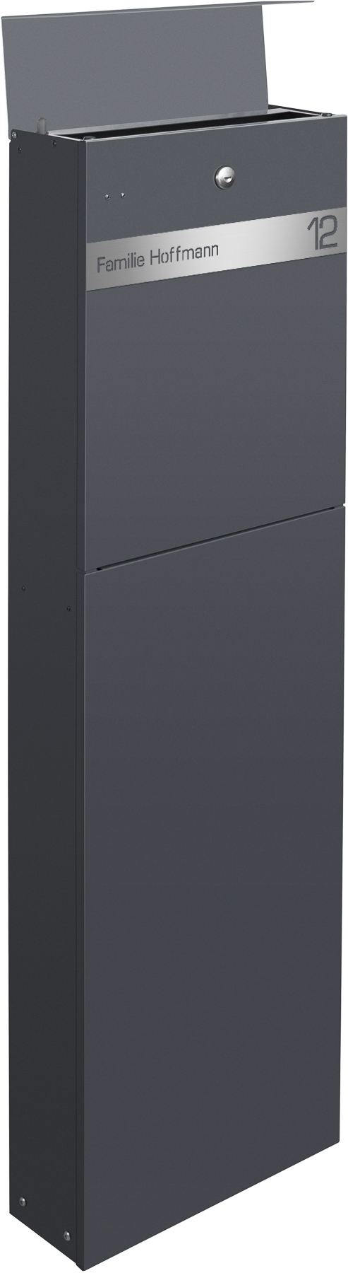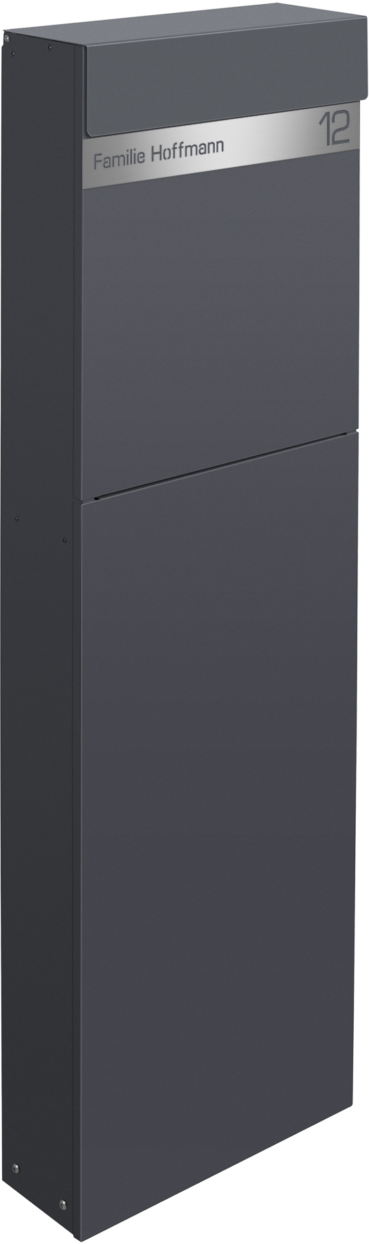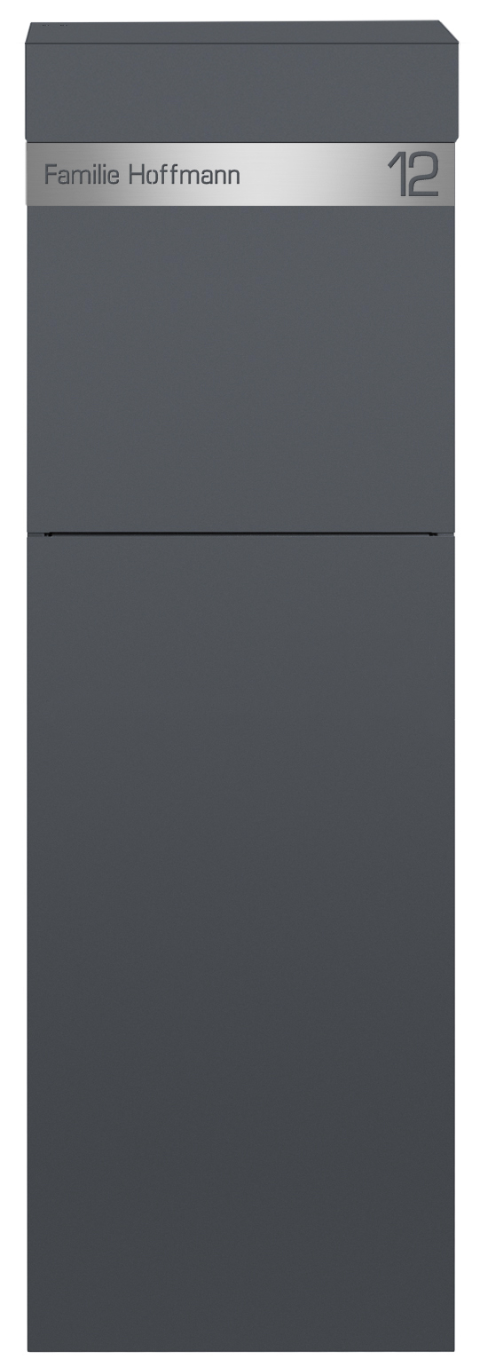 Der Design Standbriefkasten NAMUR wird aus verzinktem, lackiertem Stahl in RAL 7016 Anthrazitgrau gefertigt und ist ein wahres Design Kunstwerk. Er harmoniert durch seine klaren Linien und seine geradlinige Optik perfekt mit seiner Umgebung. Das moderne Design kombiniert mit hochwertigen Materialien und präziser Verarbeitung garantiert Ihnen lange Freude an diesem schönen Briefkasten. Das Schloss befindet sich witterungsgeschützt unterhalb unterhalb der sanft schließenden, fallgedämpften Einwurfklappe. Der Einwurf erfolgt von oben, die Postentnahme erfolgt auf der Frontseite. Mit insgesamt 18,5 Litern Fassungsvermögen bietet NAMUR viel Platz für Ihre Post sowie Zeitungen und Zeitschriften.