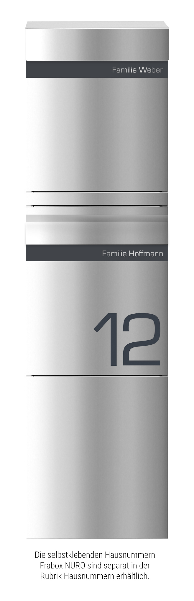 Bei der Frabox® Lasergravur wird Ihr Name und Ihre Hausnummer aus der lackierten Namensschildplatte ausgelasert, wodurch der Edelstahluntergrund zum Vorschein kommt. Die Namensschildplatten werden separat mitgeliefert und können so flexibel an der gewünschten Position angebracht werden.