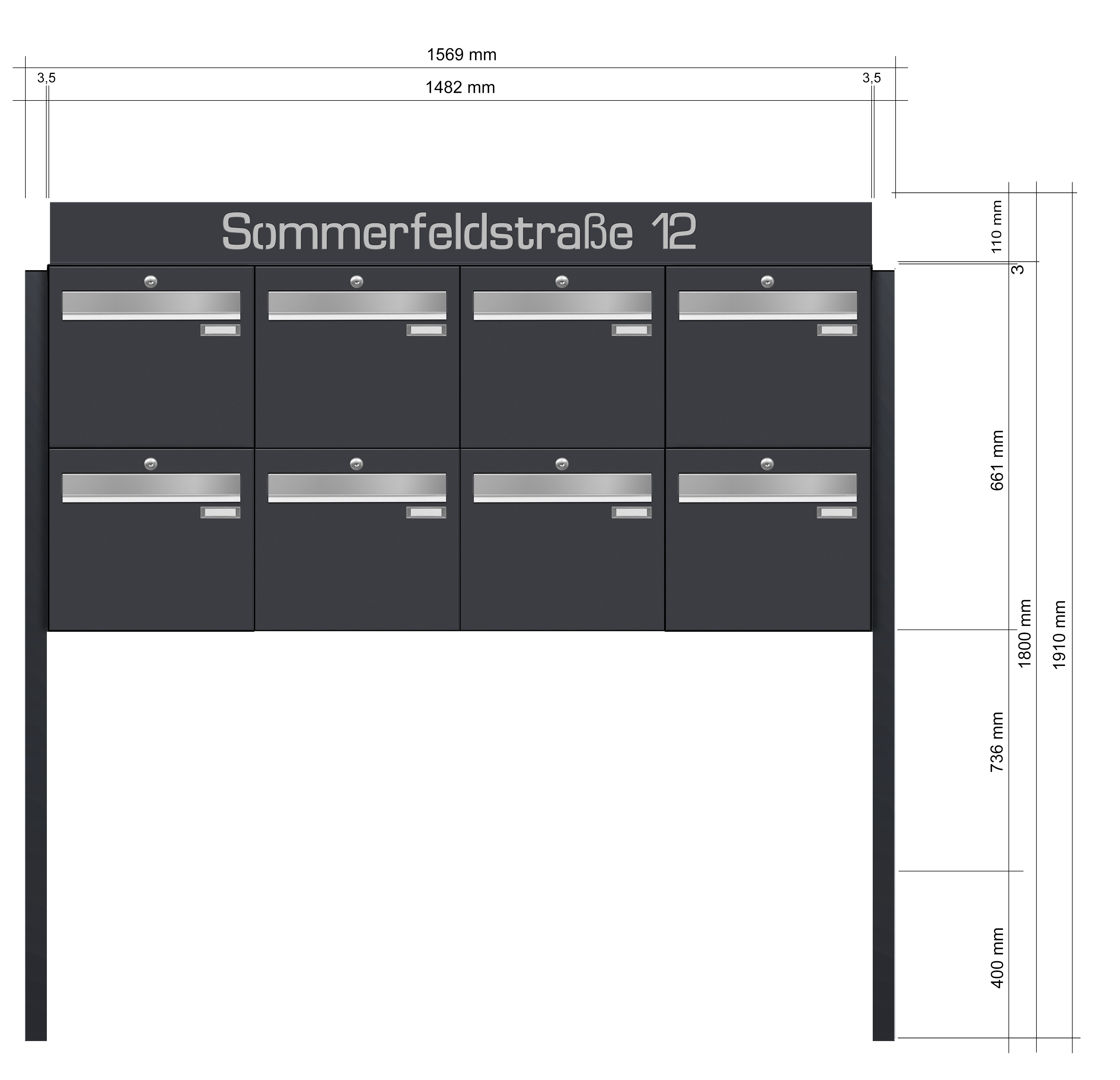 Fassungsvolumen: ca. 12 Liter je Briefkasten
