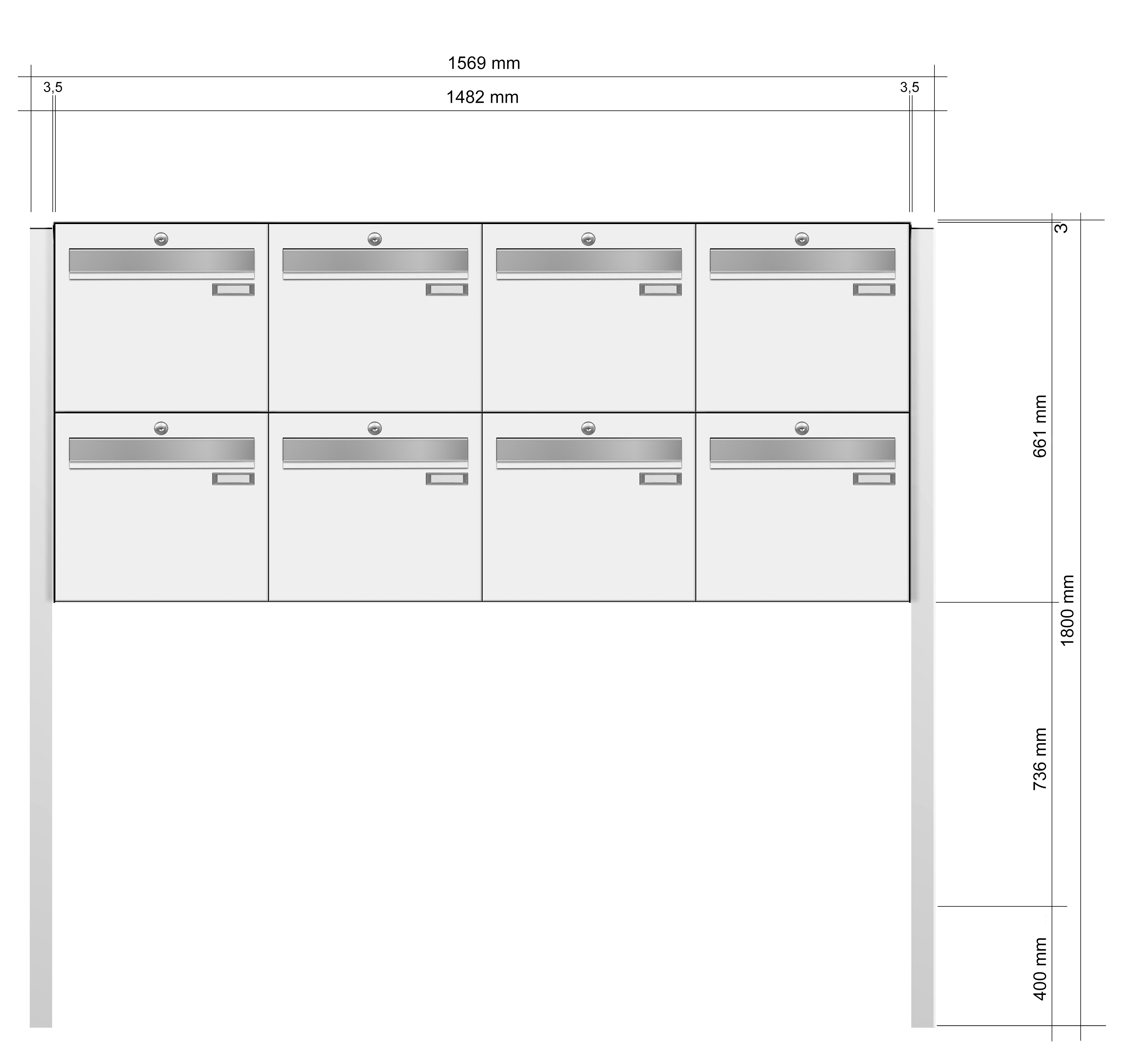 Fassungsvolumen: ca. 12 Liter je Briefkasten