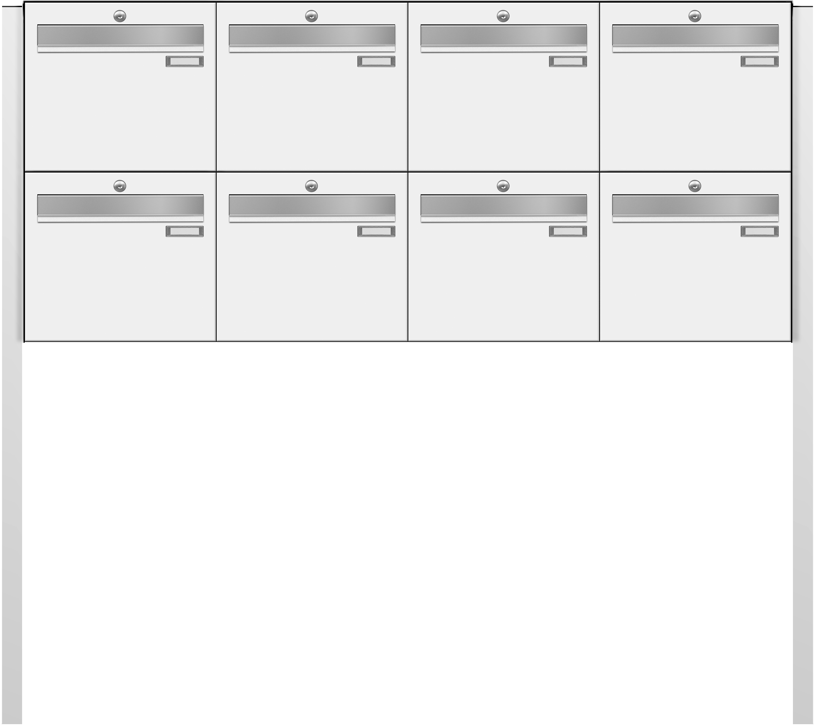 Die Anlage wird in sich komplett montiert geliefert (in einem Block), inklusive 2 Schlüsseln für jeden Briefkasten sowie Namensschild.