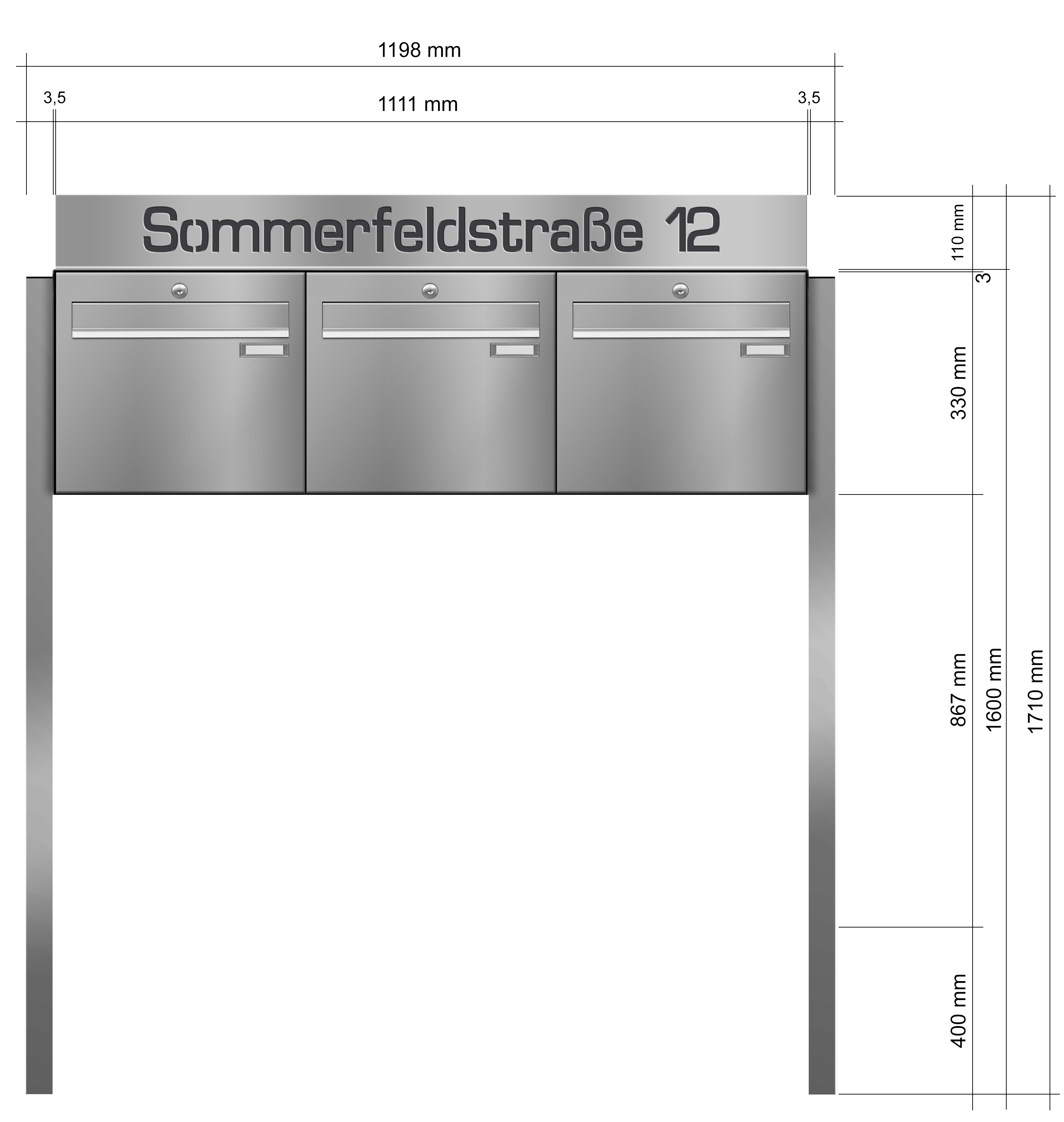 Maße je einzelnem Briefkasten: