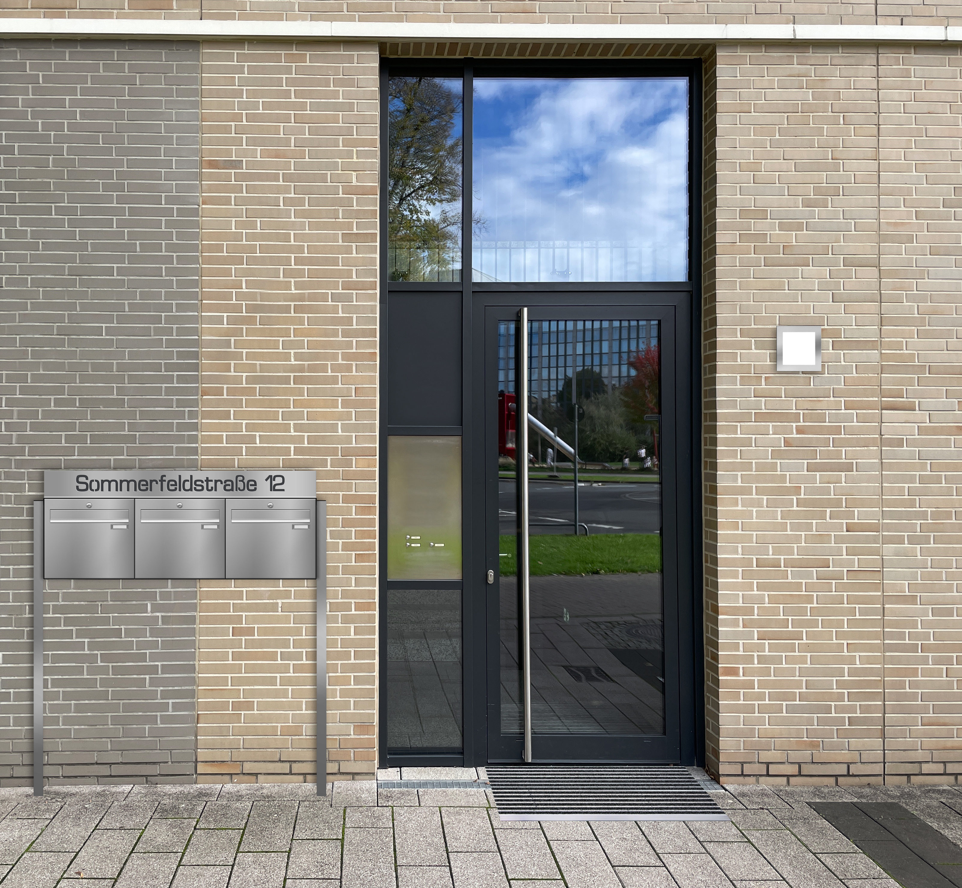 Die Anlage wird in sich komplett montiert geliefert (in einem Block), inkl. 2 Schlüsseln für jeden Briefkasten sowie Namensschild.